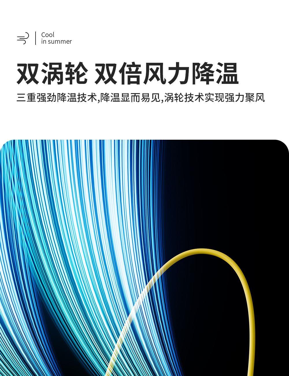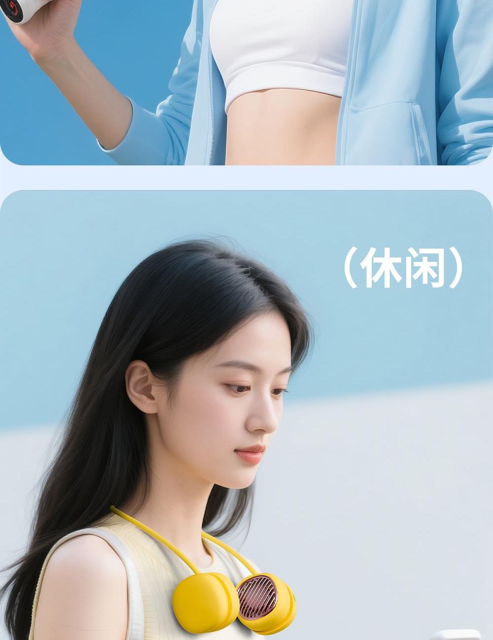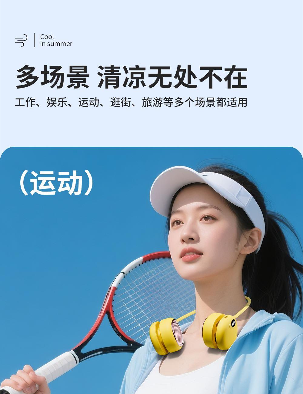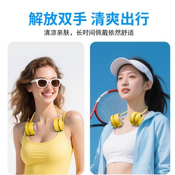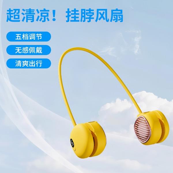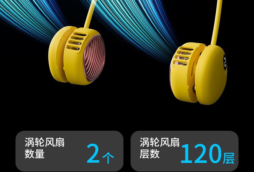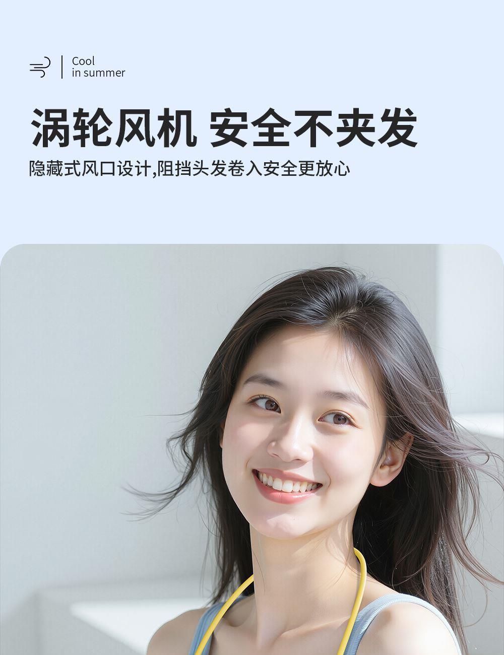 产品材质:ABS 产品功能:5档风力调节 产品容量:1000mAh 产品尺寸:58*58*48.5mm 产品颜色:白色,黄色,绿色,粉色 释放双手,挂脖更轻松;可自由调节,怎么舒服怎么吹,创新绕线收纳,迷你便携,收纳不占空间,五档风力,随心切换。