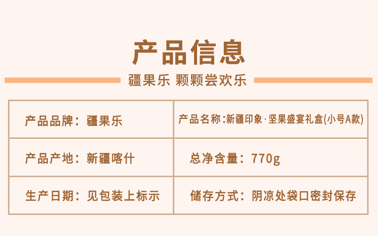 疆果乐新疆印象·坚果盛宴礼盒(小号A款)770g/袋