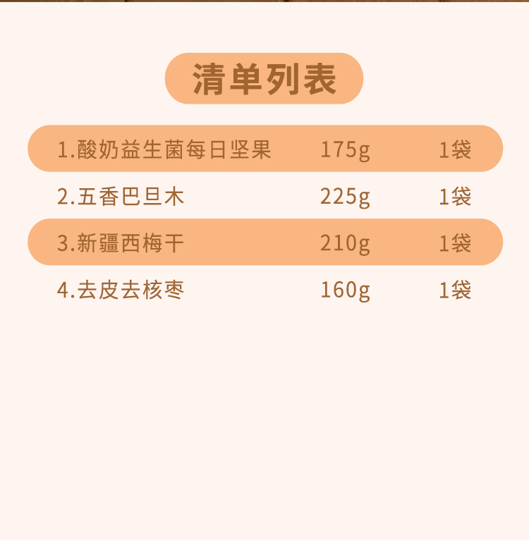 新疆特产 送礼有面 产地直发 新疆印象·坚果盛宴礼盒(小号A款) 酸奶益生菌每日坚果175g*1 五香巴旦木225g*1 西梅干210g*1 去皮去核枣160g*1 新疆印象·坚果盛宴小号礼盒*1