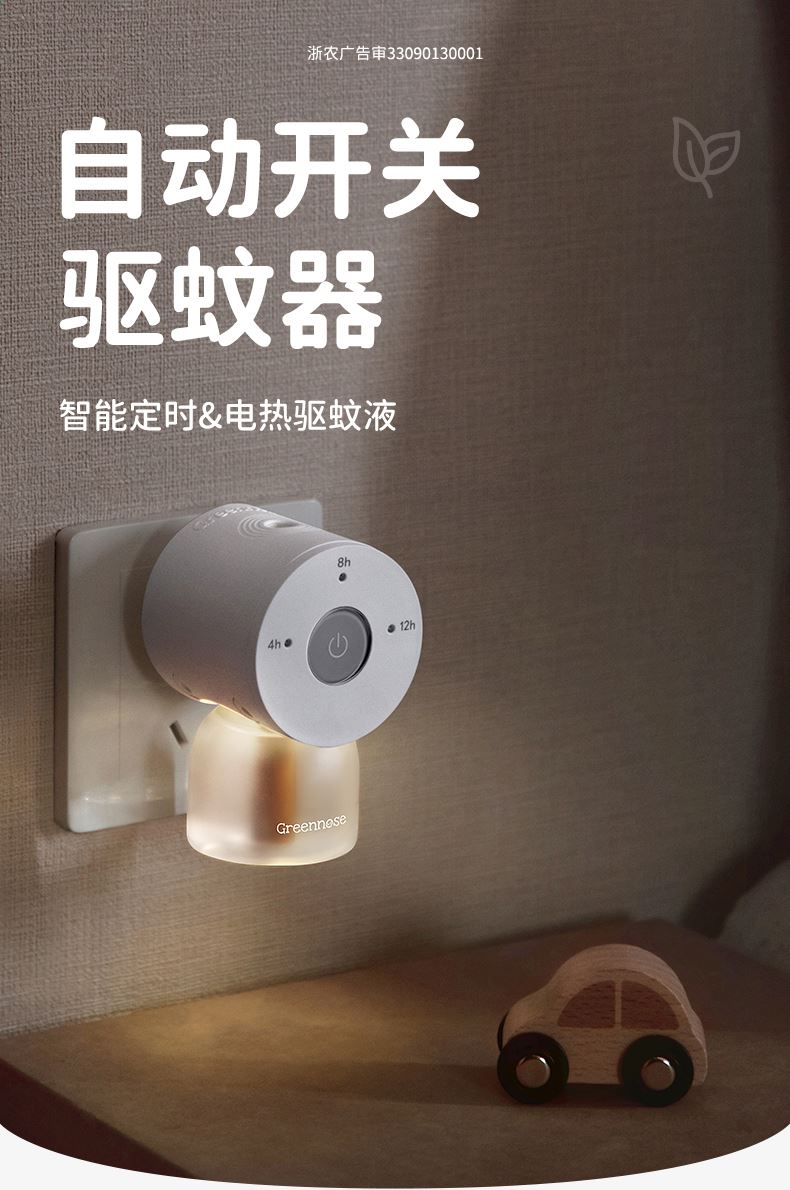 1 ①智能定时:真正的智能生活,操作简单易上手。 ②3档定时,4小时-8小时-12小时,满足不同驱蚊时间需求(4h午睡、8h晚间睡眠、12h常驻客厅); ③24小时自动循环,在不断电的情况下,加热器将自动记忆上次开关机时间和定时时间(解决忘关后安全隐患以及浪费资源;自动开能解决消费者忘开,被蚊虫叮咬的烦恼); 2档挥发,初档母婴模式,安全驱蚊,适合有孕婴房间,加强档高效驱蚊,适合蚊虫较多较毒的房间; 3.小夜灯:舒适柔和的小夜灯,起夜摸黑不惧怕,温馨守护家人,可单独开启和关闭; 2024年新款增加夜灯随定时功能关闭,夜灯也关闭功能;