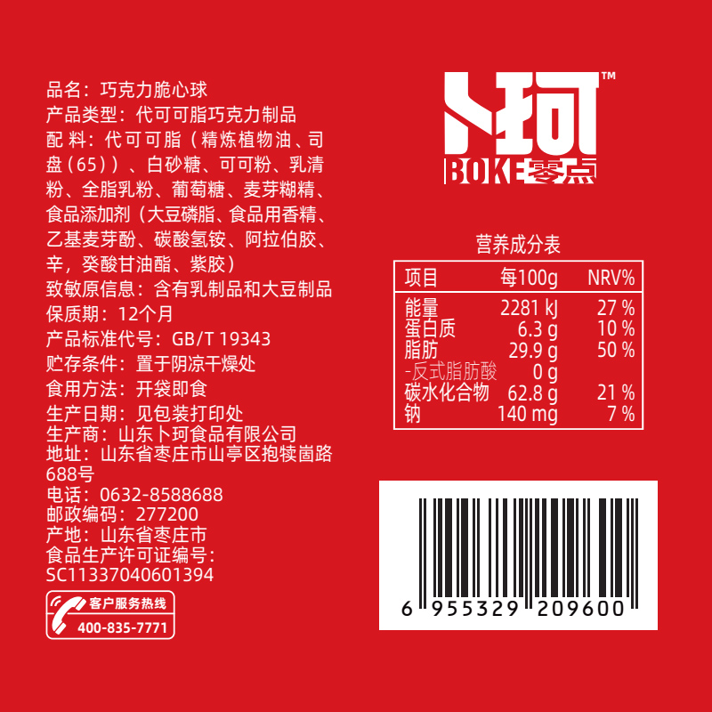 克重:464克 内配: 1.清香抹茶味松露形代可可脂巧克力30g×5袋 2.可可原味松露形代可可脂巧克力30g×5袋 3.巧克力绵绵豆52g×2袋 4.脆心球代可可脂巧克力制品30g×2袋 礼盒规格:24*16*14.5cm 保质期:12月