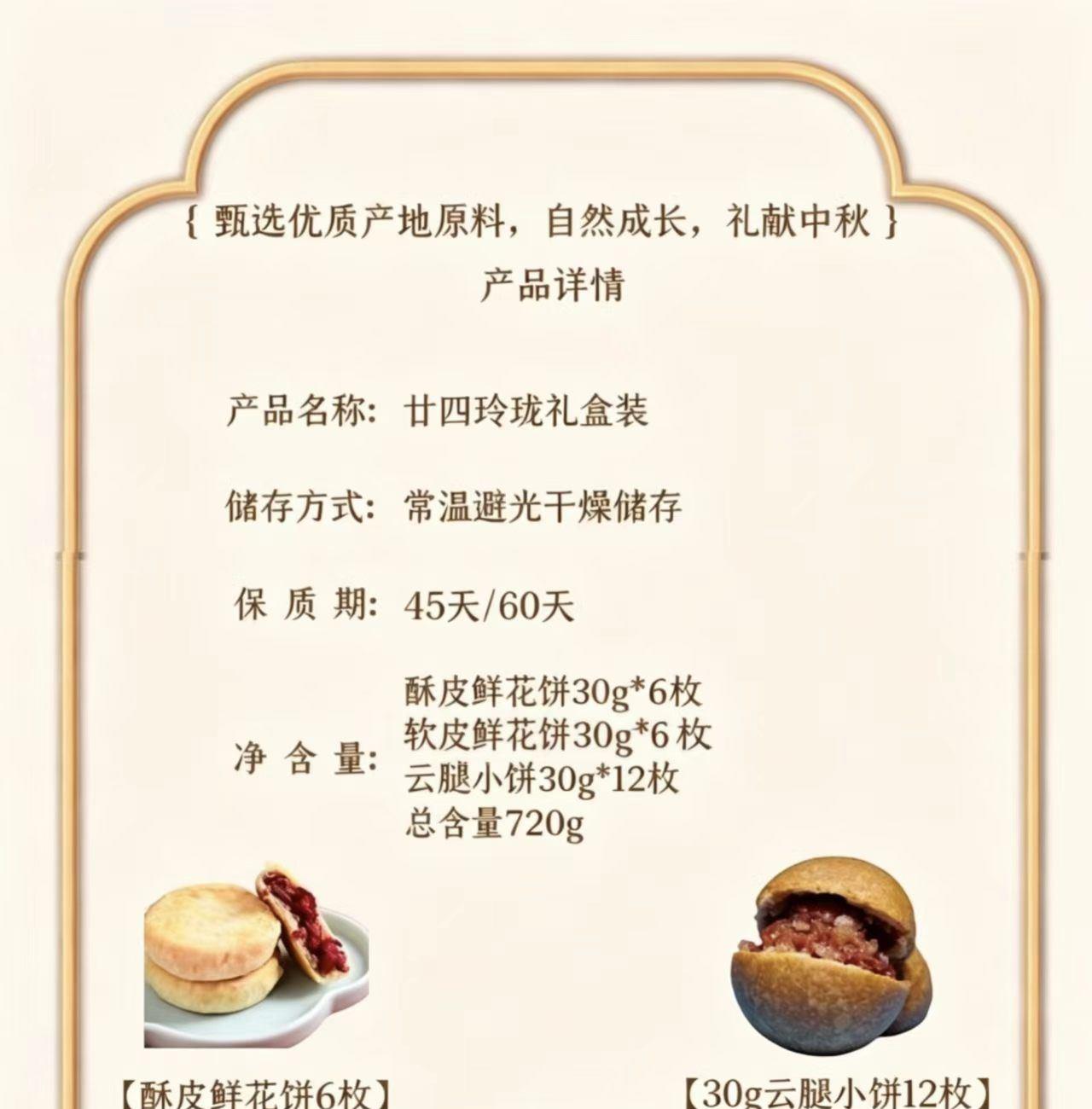 内 配:云腿小饼30g*12枚,酥皮鲜花饼30g*6枚,软皮鲜花饼30g*6枚 云南特产,礼盒款式随机发货