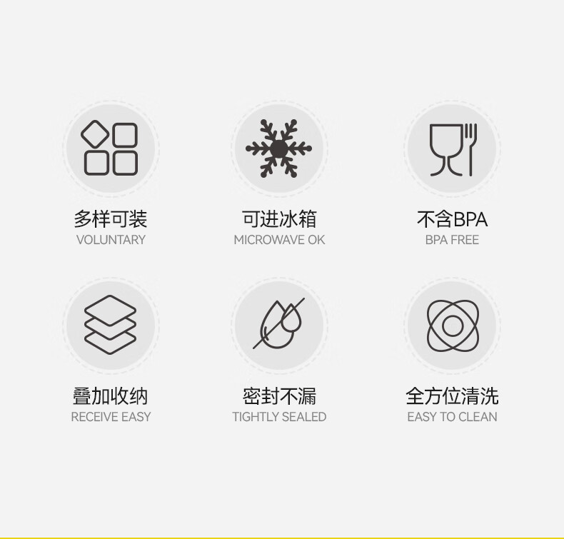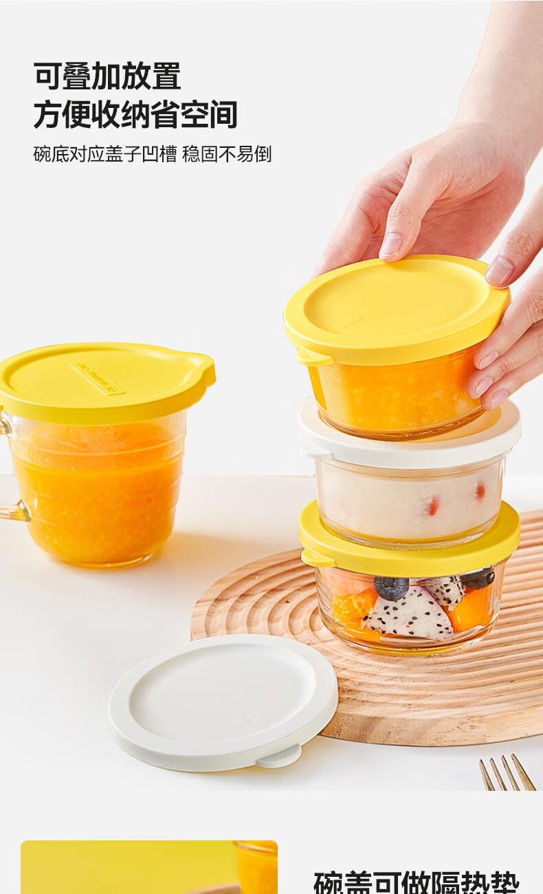 健康早餐唤醒营养每一天 350ml精致容量可叠加可冷藏 可叠加放置,方便收纳省空间 碗底对应盖子凹槽 稳固不易倒 碗盖可做隔热垫 刚出锅的食物可以先放在碗盖上再放在桌面,即隔热又避免烫坏桌面 材质安全,多种食物放心装 容量小巧·密封保鲜·明亮色彩 单侧挂耳设计辅助开盖 隔热防烫 开盖不烫手 碗盖一体成型 密封不撒漏 减少卫生死角 清洁更快更方便