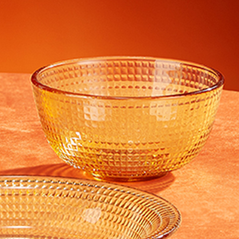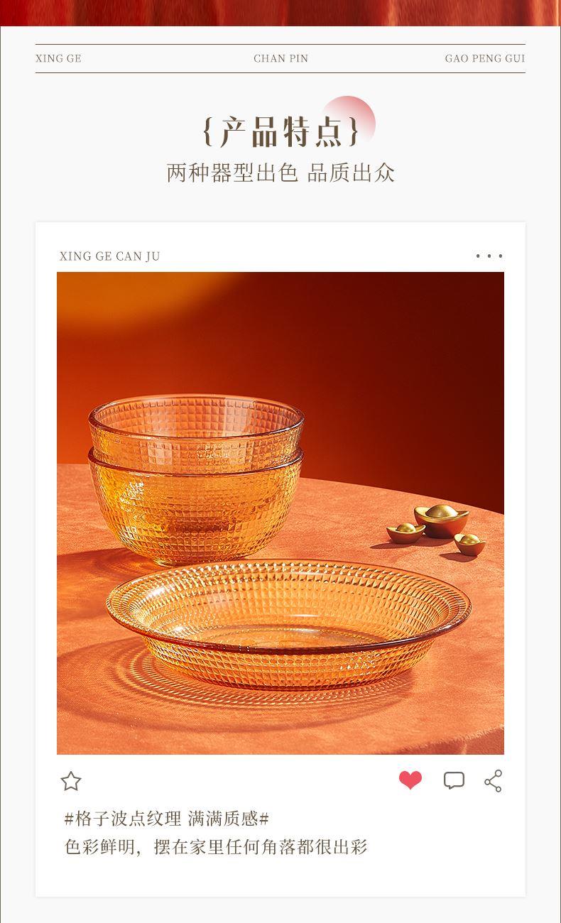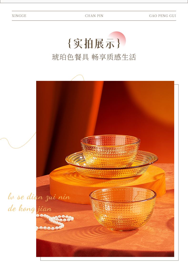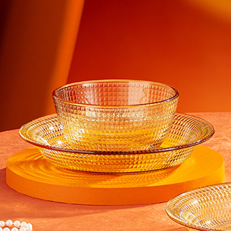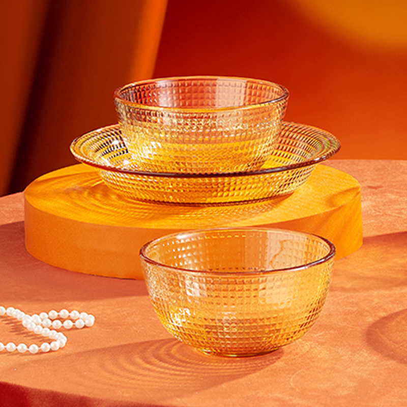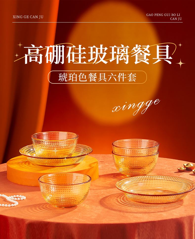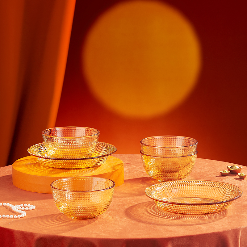 货 号:BL-CJ/L6 适用温度:-20°C-200°C 材 质:高硼硅玻璃 产品参数:小碗460ml*4、 盘196mm*2 彩盒尺寸:480*82*259mm 外箱尺寸:49.2*34.2*53.4cm 产品卖点:1.产品采用高硼色料玻璃材质,颜色与生俱来,永不退色。烤箱、微波炉、冰箱冷冻放心使用。2.百丽高硼餐具设计理念,用线条勾勒几何切面,以面为境折射时光、徜徉星空。3.触感温润,品质卓 越,为您的餐桌增添一抹高雅。