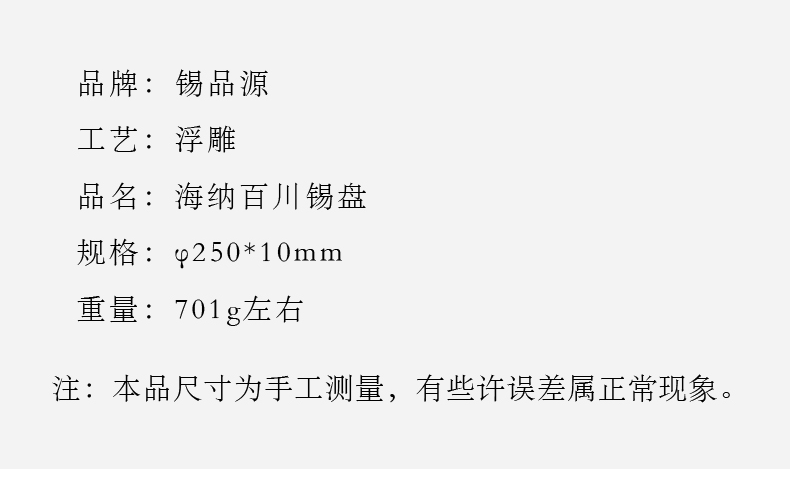 产 品:海纳百川锡盘