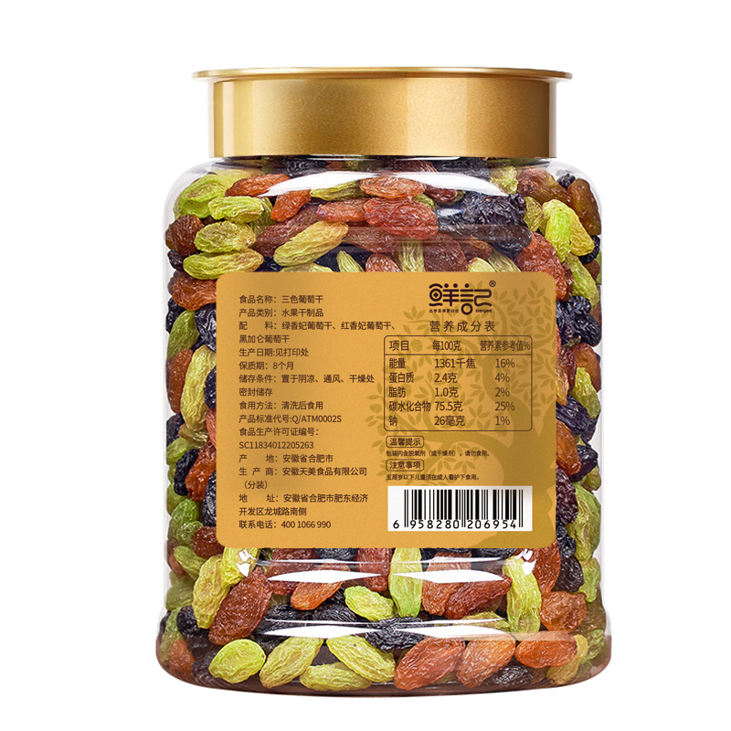 鲜记三色葡萄干468g(博士帽罐装)