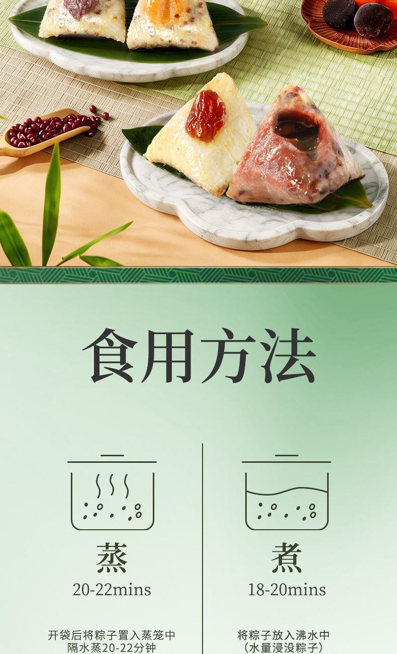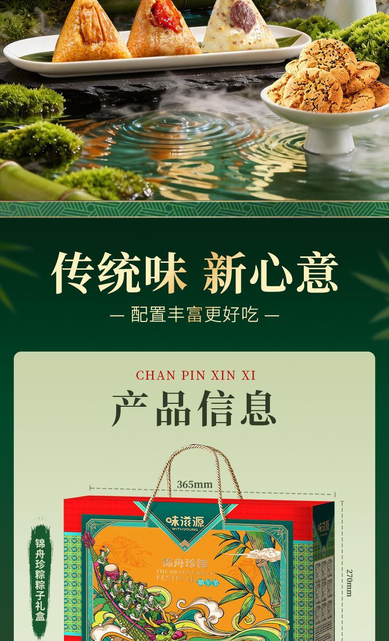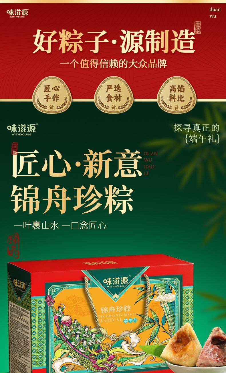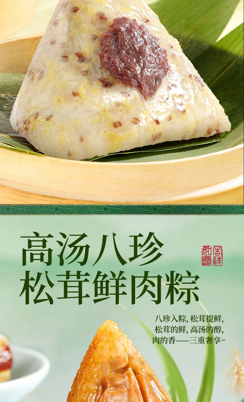 味滋源 高汤八珍松茸鲜肉粽120g 味滋源 鲜肉粽单枚100g 味滋源 荔浦芋头凝香粽100g 味滋源 黄米藜麦豆沙粽100g 味滋源 黄米蜜枣粽 100g 味滋源 核桃仁枣泥流心粽105g 味滋源 奇亚籽紫薯流心粽105g 味滋源 芝麻桃酥228g 味滋源 八宝粥320g