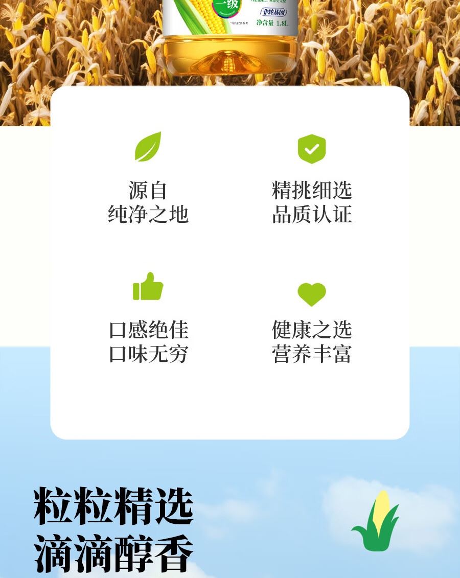吉潮瑞鲜压榨一级玉米油(非转基)1.8L