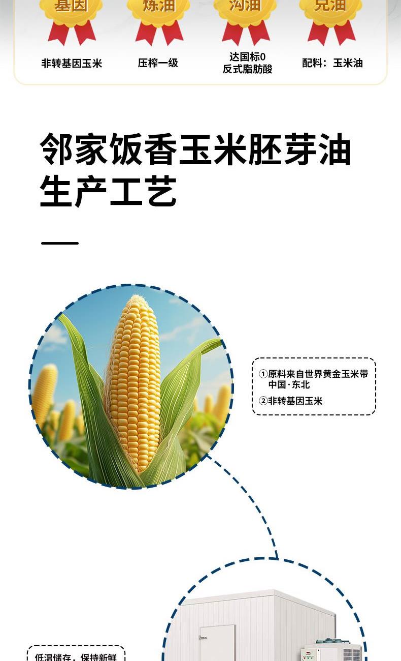 邻家饭香非转基因物理压榨一级玉米胚芽油1L/瓶LJFX54