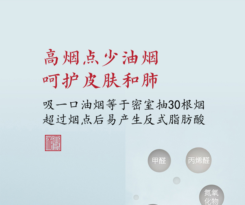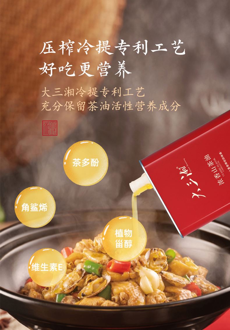 产品配料:有机油茶籽油 生产工艺:物理压榨 规格:1L*2 保质期:18个月 产地:湖南衡阳 储存方式:密闭置阴凉干燥处 1、浓香纯正,风味浓郁,不止是土榨坊的味道 自创风味浓郁的浓香山茶油增香技术,将茶油中特有的芳香气味大部分封存在茶油里。 2、230 ℃高烟点 热锅下油味更浓 230°的高烟点,符合中国人的烹饪习惯,高温烹饪更能激发浓香茶油香味,且炒菜少有油烟,减少油烟危害。 3、荤菜好搭档 入味不腻 茶油分子小,渗透力强,能够激发食材原有风味,而且清爽不油腻,尤其适合做荤菜。