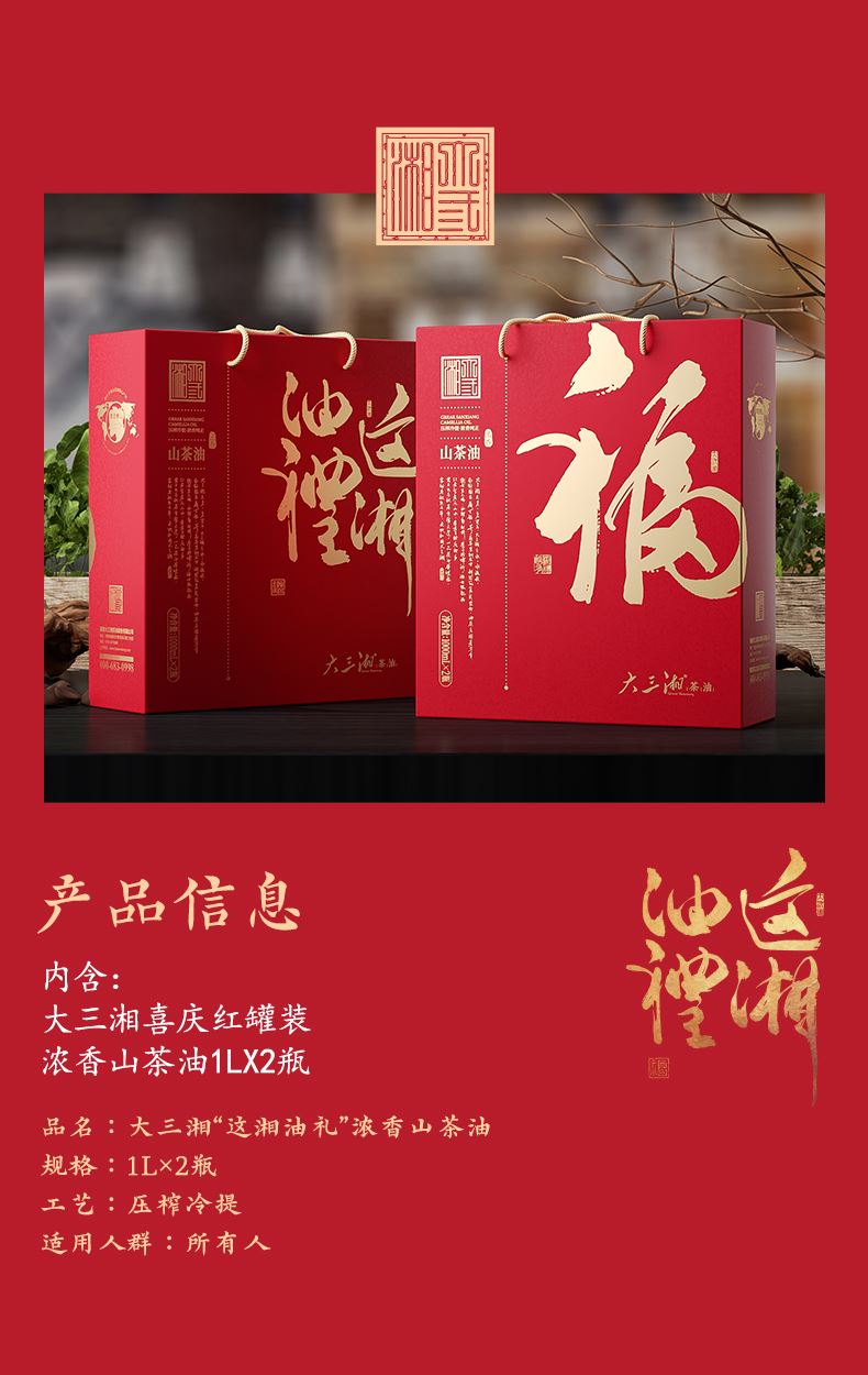 • 大三湘这湘有礼【浓香山茶油1L*2瓶】礼盒