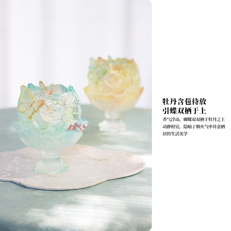 心缘甄琉璃蝶恋花无火香薰扩香石摆件氛围小夜灯装饰