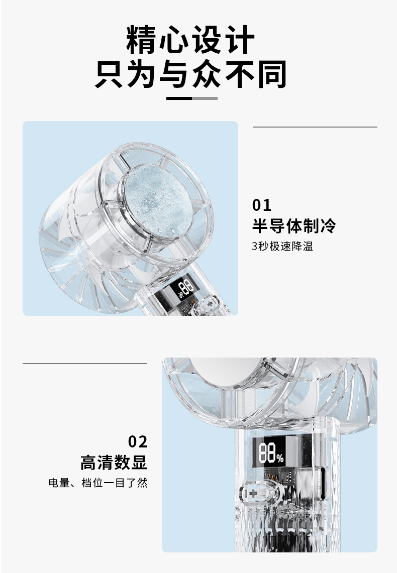 • 透明半导体制冷手持风扇H18