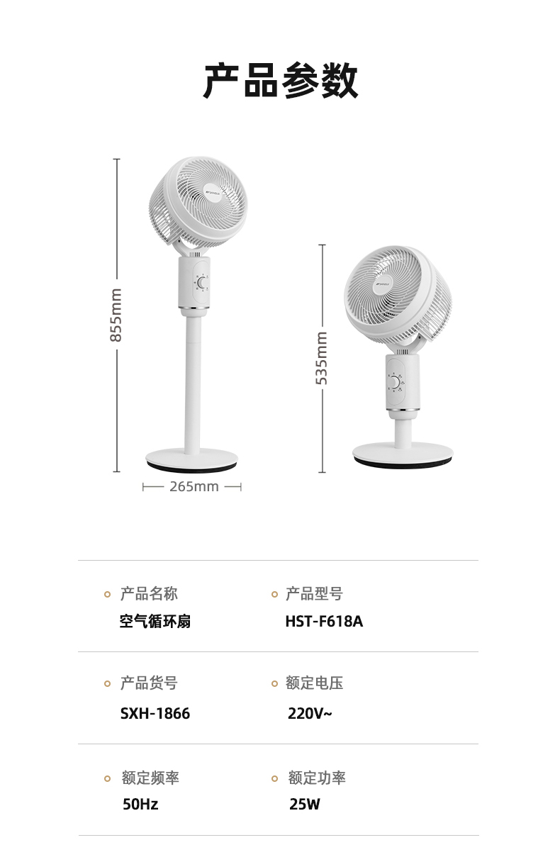 额定功率:25W ① 3 档风速调节 ② 自动左右摆头:90° ③ 手动上下摆头:向上 90°,向下 0° ④ 旋钮控制 ⑤ 可拆卸长杆 ⑥ 低噪声和短路保护、纯铜电机、纯铜电源线 包装方式:网购包装