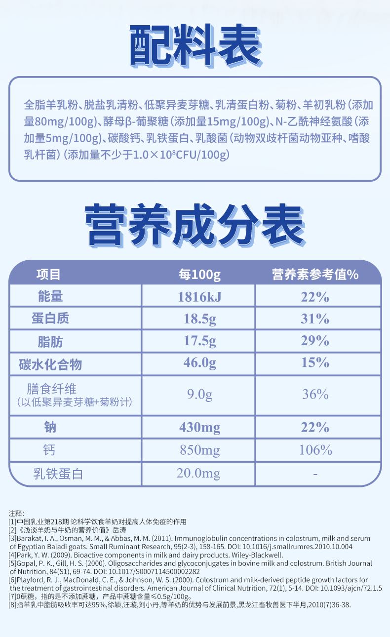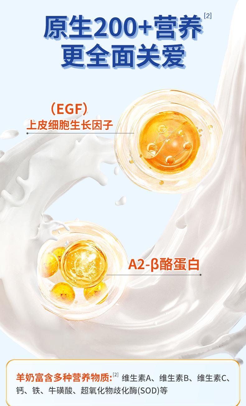 1、珍贵羊初乳年产量仅有0.06% 2、羊初乳免疫蛋白IgG营养补给 3、天然优质高蛋白是纯牛奶的5倍 4、双重益生菌,守护肠道健康