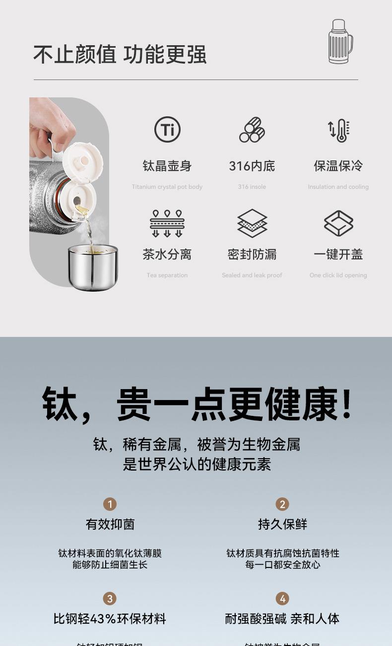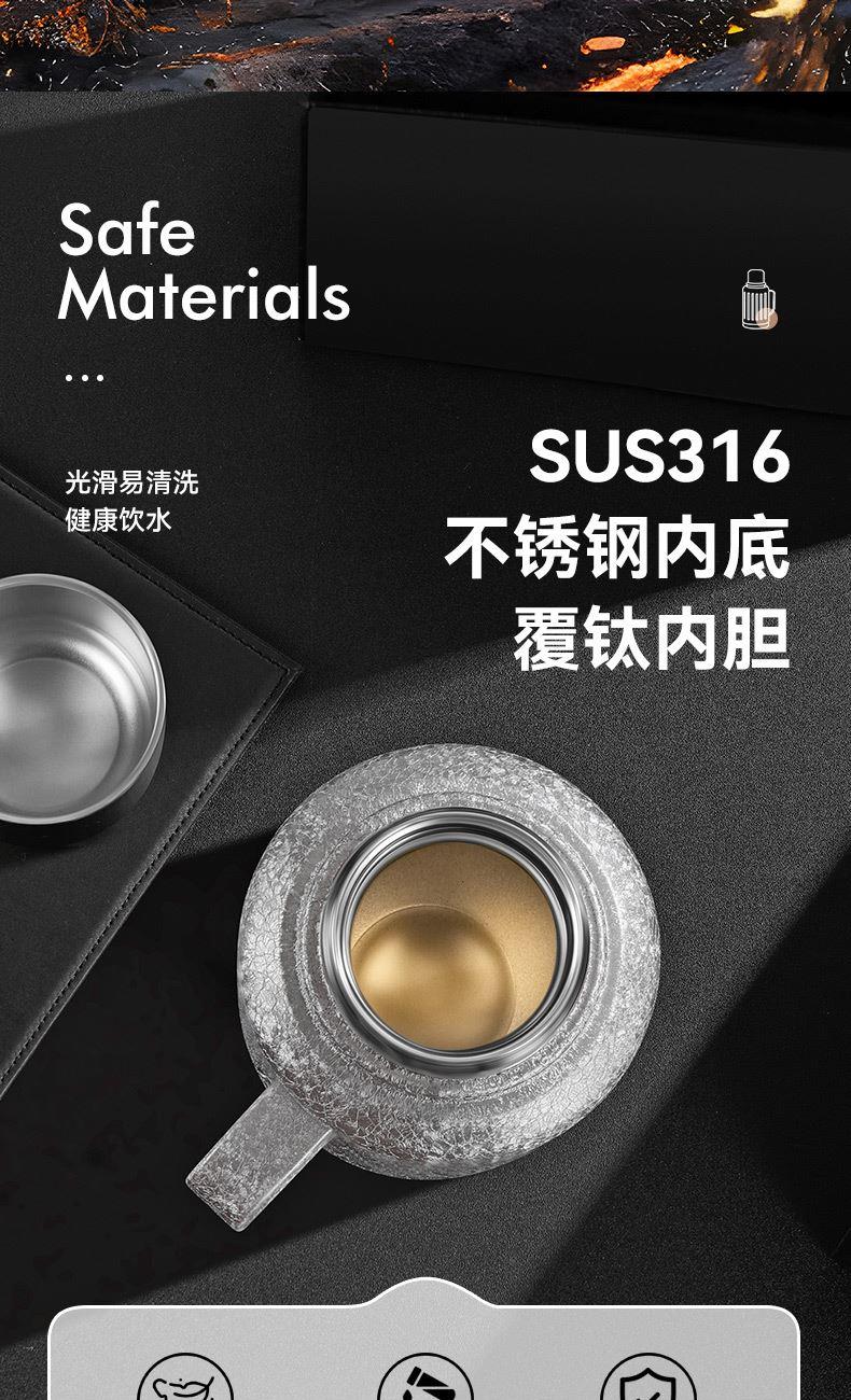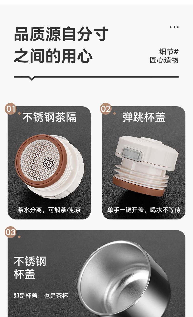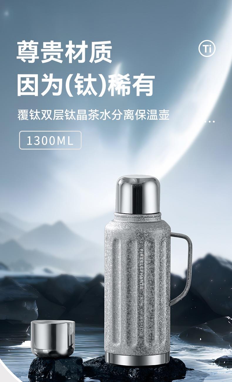 规 格:1300ml 材 质:内胆底片SUS316不锈钢,内胆壁体SUS304不锈钢 PP(食品级)+不锈钢茶隔 ,杯盖 SUS304不锈钢 颜 色:红色(白色定制) 彩 盒 尺 寸:140x120x335mm 外 箱 尺 寸:L62.5*W50.5*H37cm 1、创意不锈钢小水杯搭配一键弹跳内盖,便捷饮水随心切换,双重真空保温时效超长。 2、内胆采用一体食品级不锈钢,内壁光滑细腻,不易粘附水垢,为您的健康保驾护航。 3、耐高温,抗腐蚀,密封度强,长效保温/保冷,密封防漏,内置茶隔,可茶水分离。 4、人体工程学手柄设计,握感舒适,外观简约而不简单。