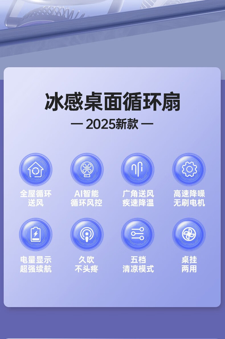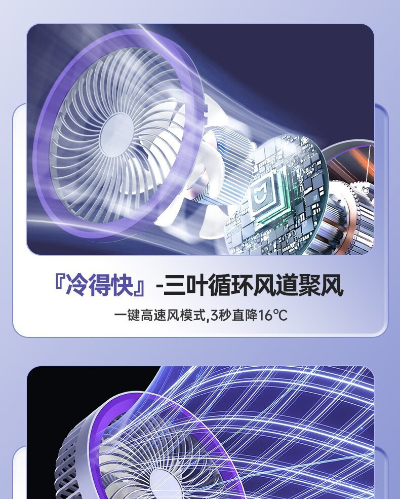 5 叶扇叶 + 无刷电机:送风更均匀,静音稳定、持久耐用