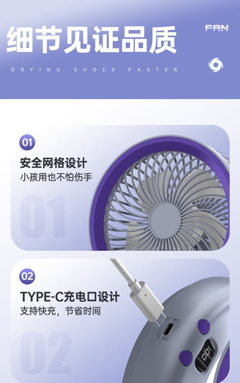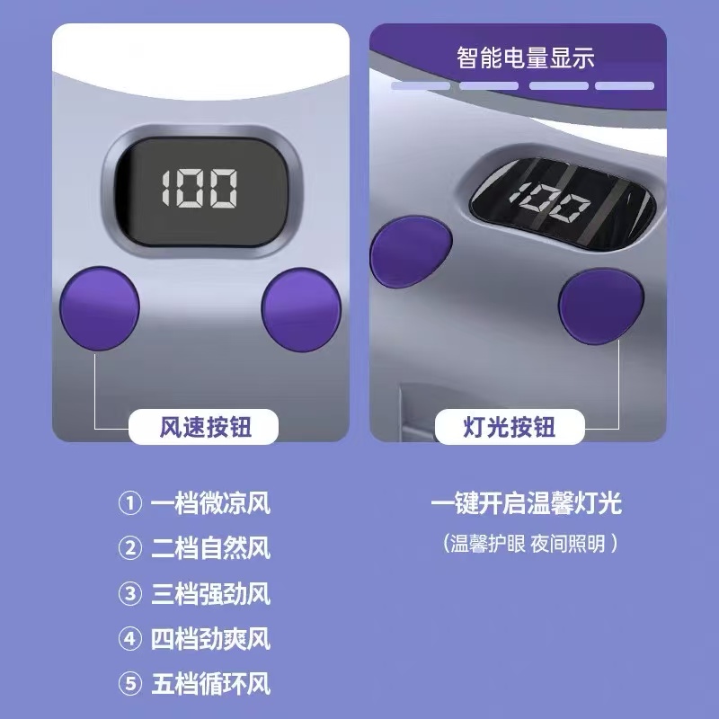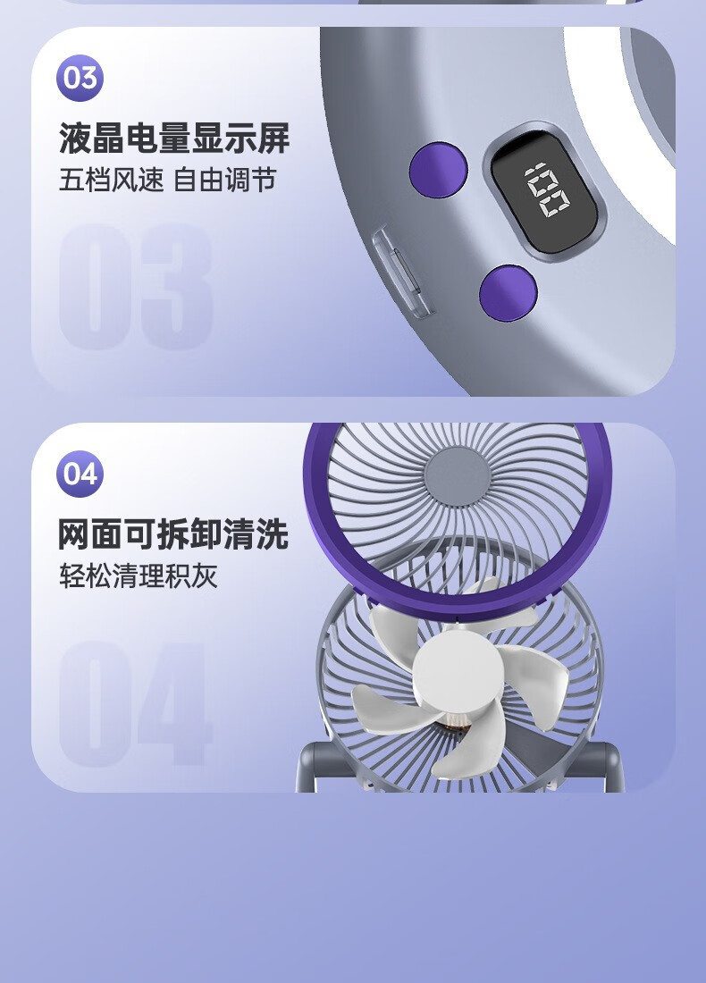 自带强光夜灯:风扇 + 照明一机两用,夜间出行更安心