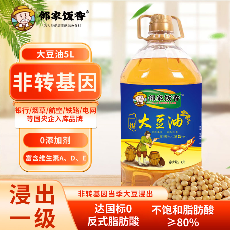 邻家饭香非转基因浸出一级大豆油5L/桶LJFX163