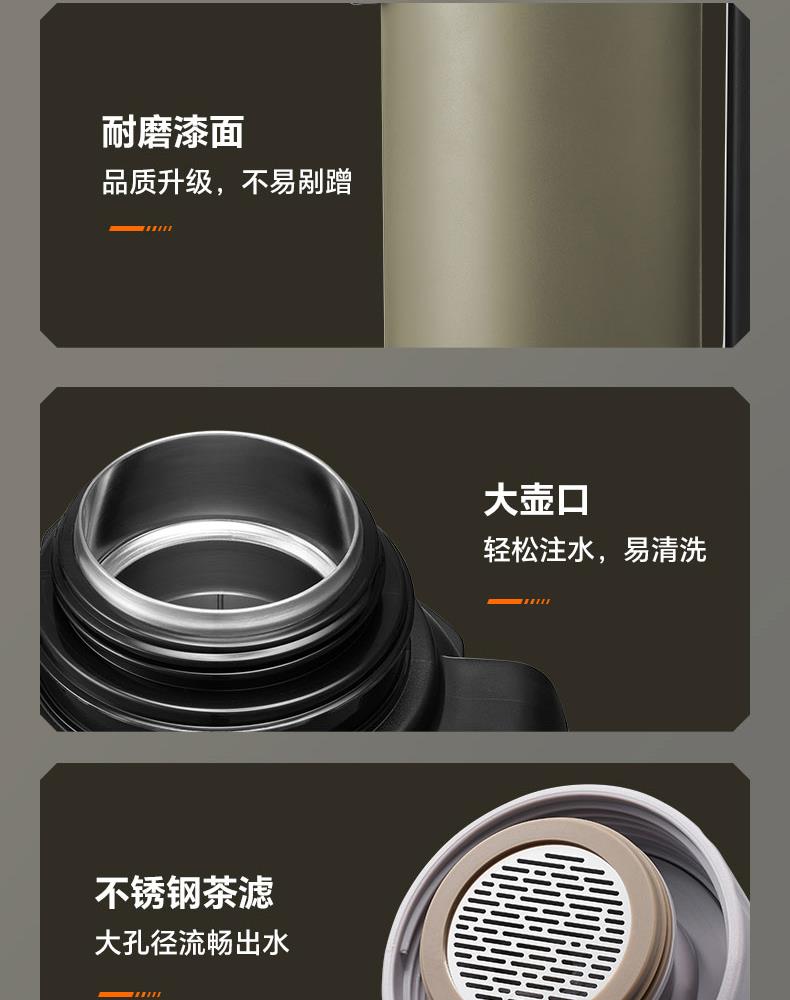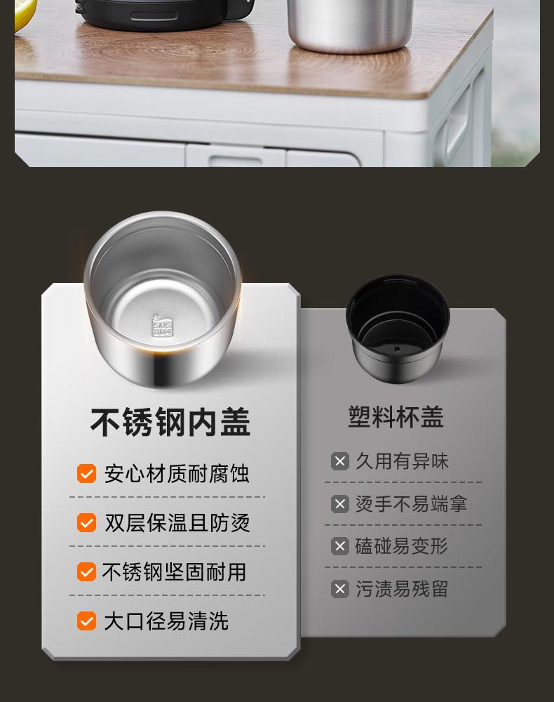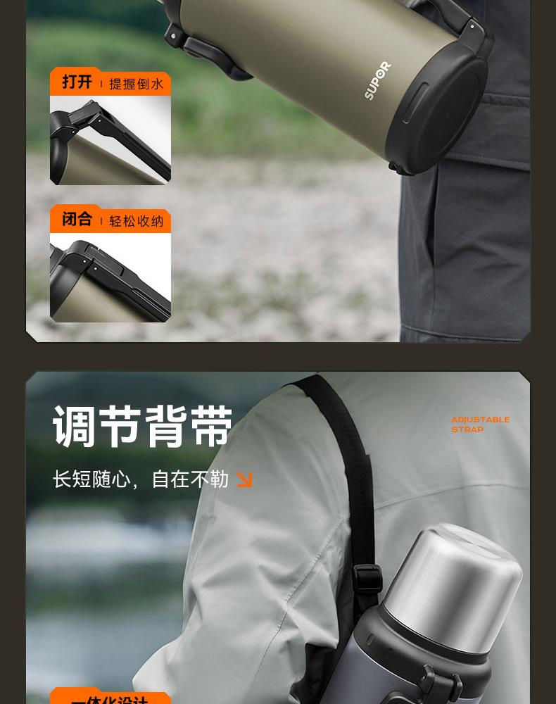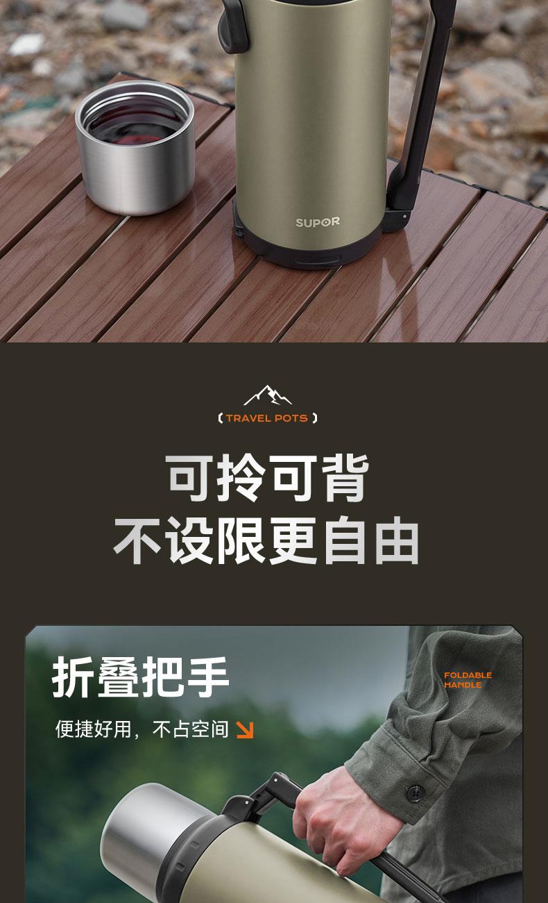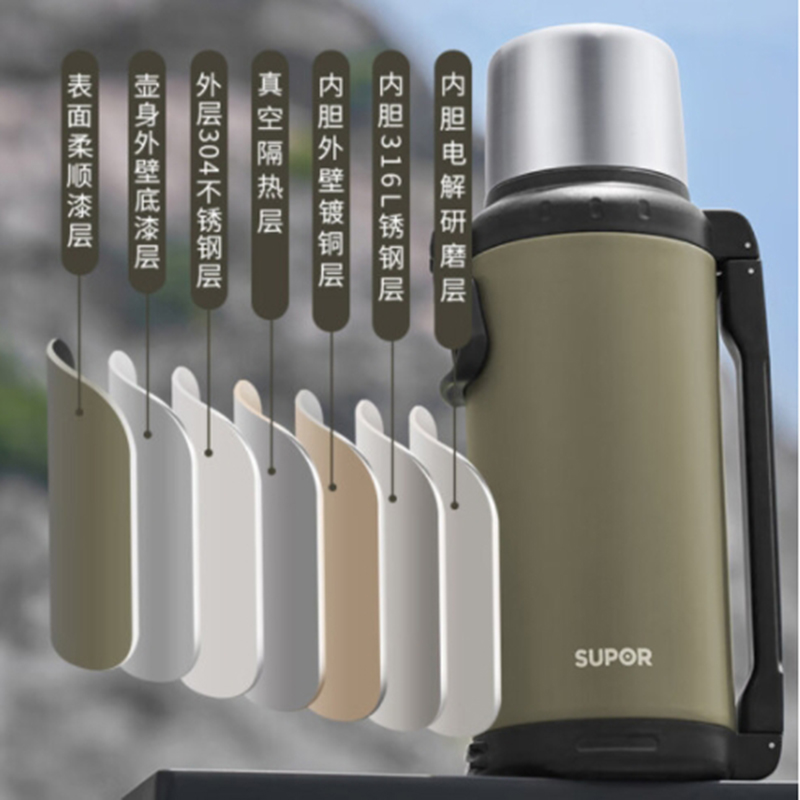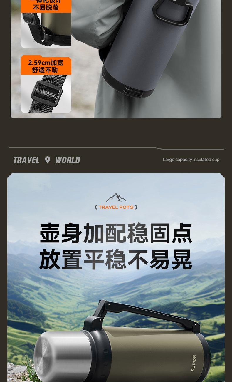 容量(L) 2.0L 材质 内胆304不锈钢 规格参数 代发在库颜色:高山绿/漫暮黑 商品毛重(kg):0.85 572*286*365 功能卖点 1、2L大容量,旅行、居家好帮手; 2、双层钢盖,热水入杯不烫手,饮用更安心; 3、强效保冷140小时+;保温24小时+; 4、一杯双用(直饮、杯盖);