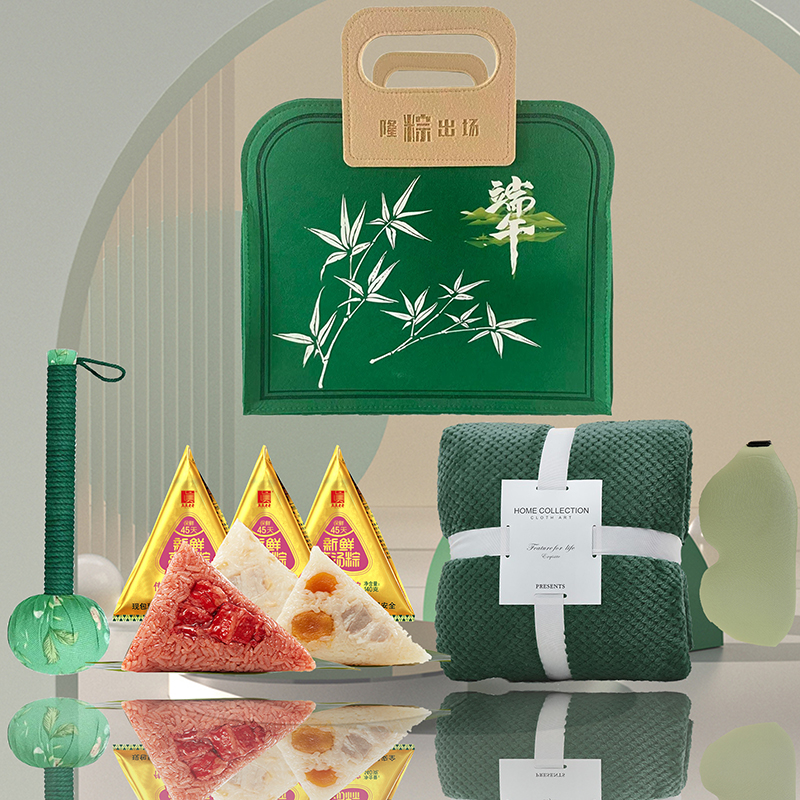 • 黛悦端午节非遗短效保鲜粽子艾草锤午休毯子眼罩毛毡包现货秒发