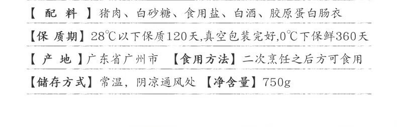 产地:广东 特产品类:广式腊肠 包装形式:袋装 食用方法:烹饪食用 加工工艺:烘干