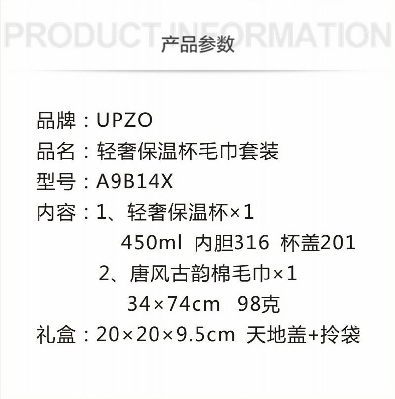 UPZO轻奢保温杯毛巾套装A9B14X