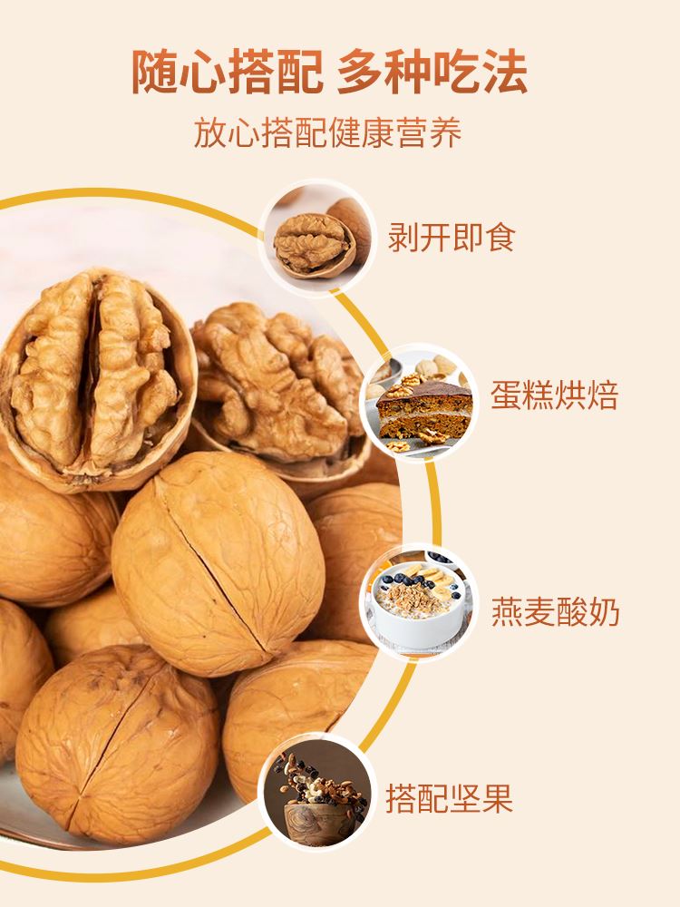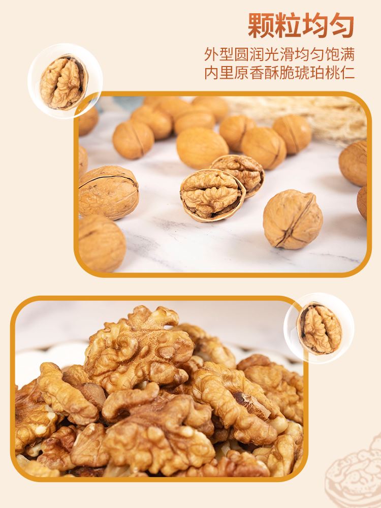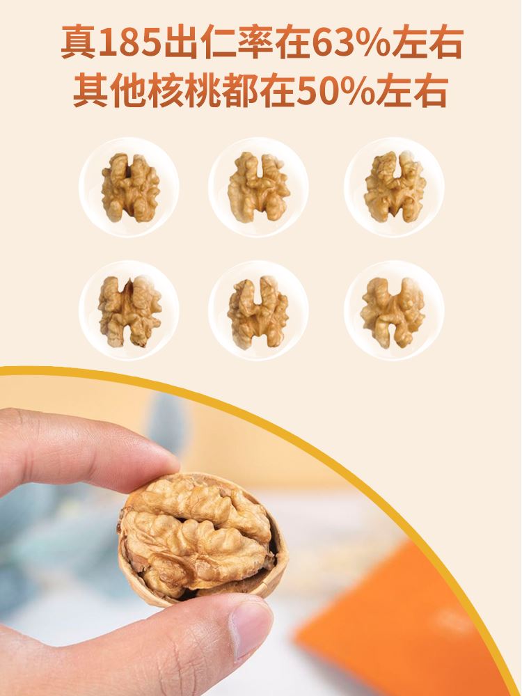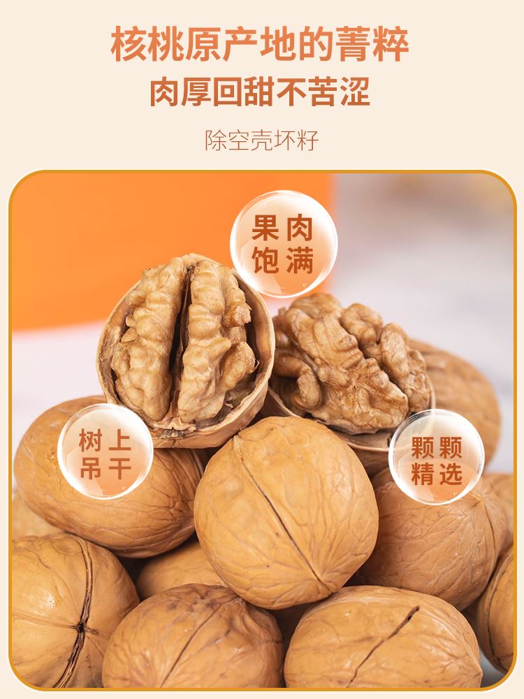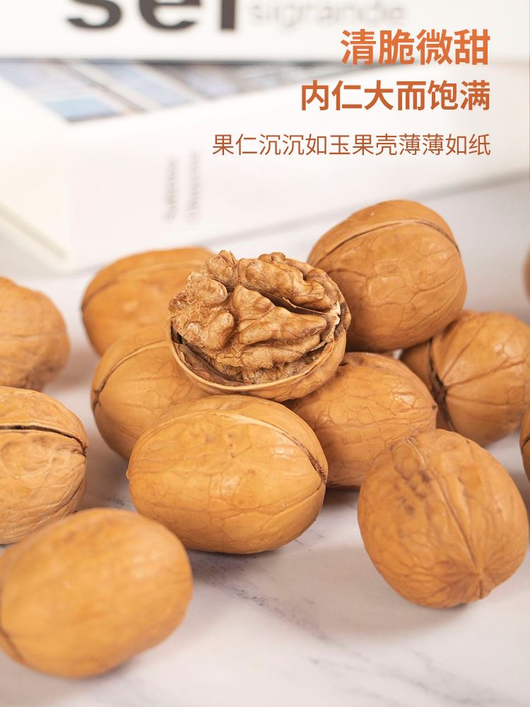 新疆185纸皮核桃,肉厚回甜不苦涩,颗粒均匀,随心搭配多种吃法,入口香甜,24小时慢烤烘焙