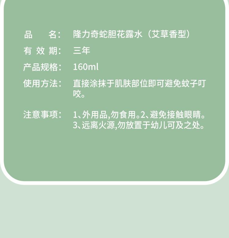 隆力奇艾草香型蛇胆花露水160ml
