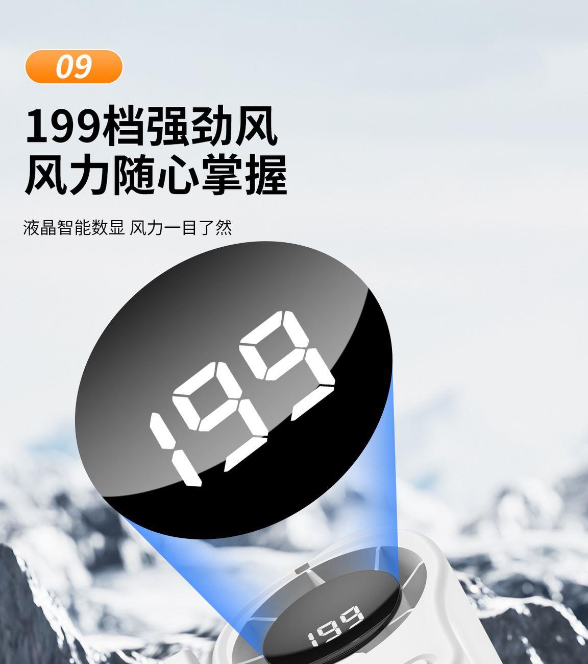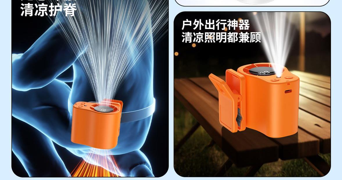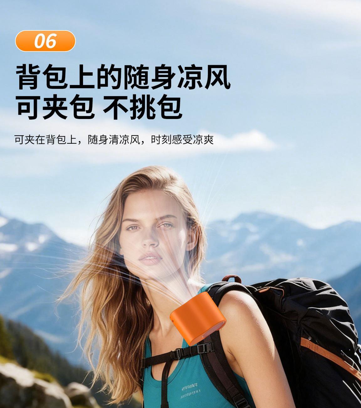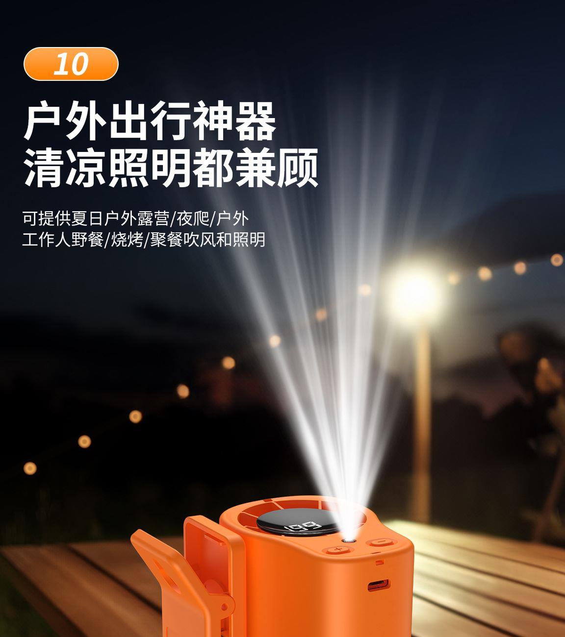 多功能夹子挂腰风扇T-511 颜色:白色 黑色 橙色 整箱数量:100PCS 外箱:41.5*38.5*38CM 单个重量:173.1g 彩盒尺寸:89*79*72mm 整箱重量:175kg 尺寸:84*74*63mm 材质:ABS材质 容量:1500mAh 包装:彩盒包装 【推荐理由】: 户外精致小巧,方便携带高速风扇 199档数显可调节高速风扇 多功能户外使用方式,解锁多种方式 1500毫安大容量电池待机更长