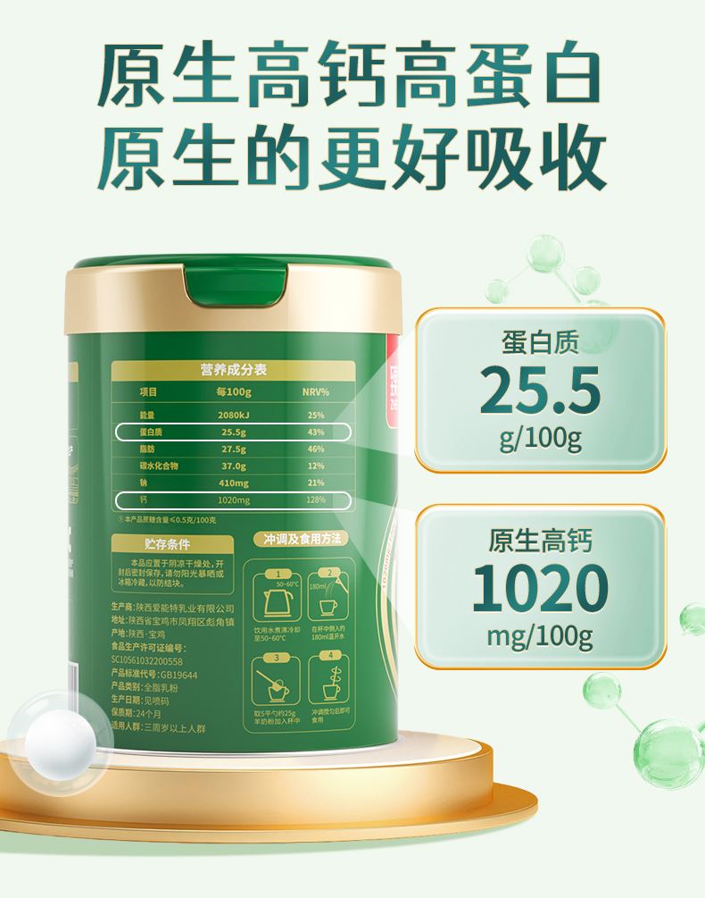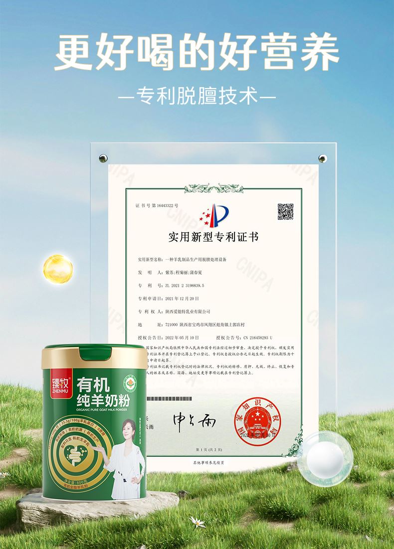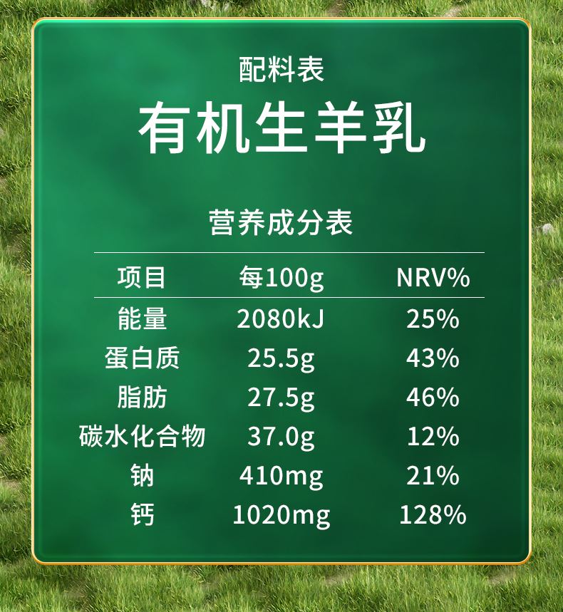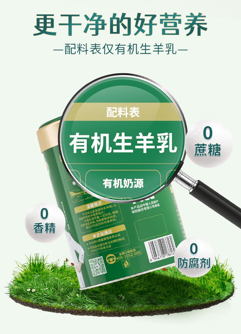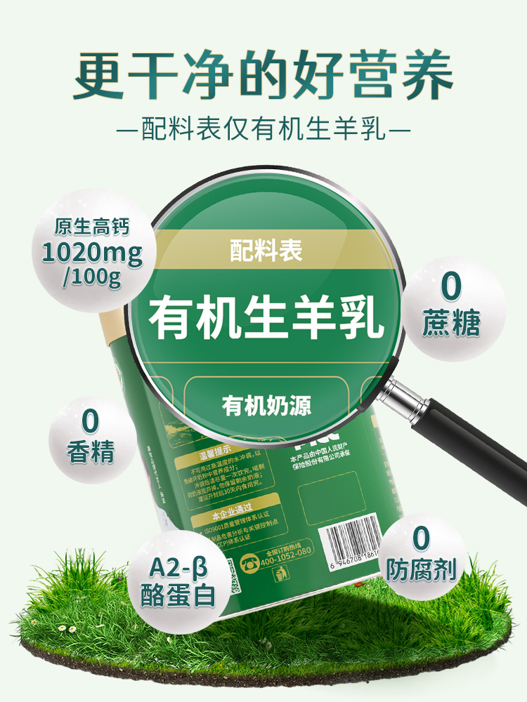1.双重有机认证证书,每一罐都有独立有机编码 公 2.配料表只含有机生羊乳,无添加 普通食品 3.0蔗糖0香精0激素0速溶剂0添加剂0防腐剂 4.脂肪球颗粒是牛奶的约1/3,易吸收好消化,不易引起乳糖不耐受 5.原生高钙,超国标4倍高钙,每100g含钙1020mg 6.脱膻技术,口感醇香愉悦