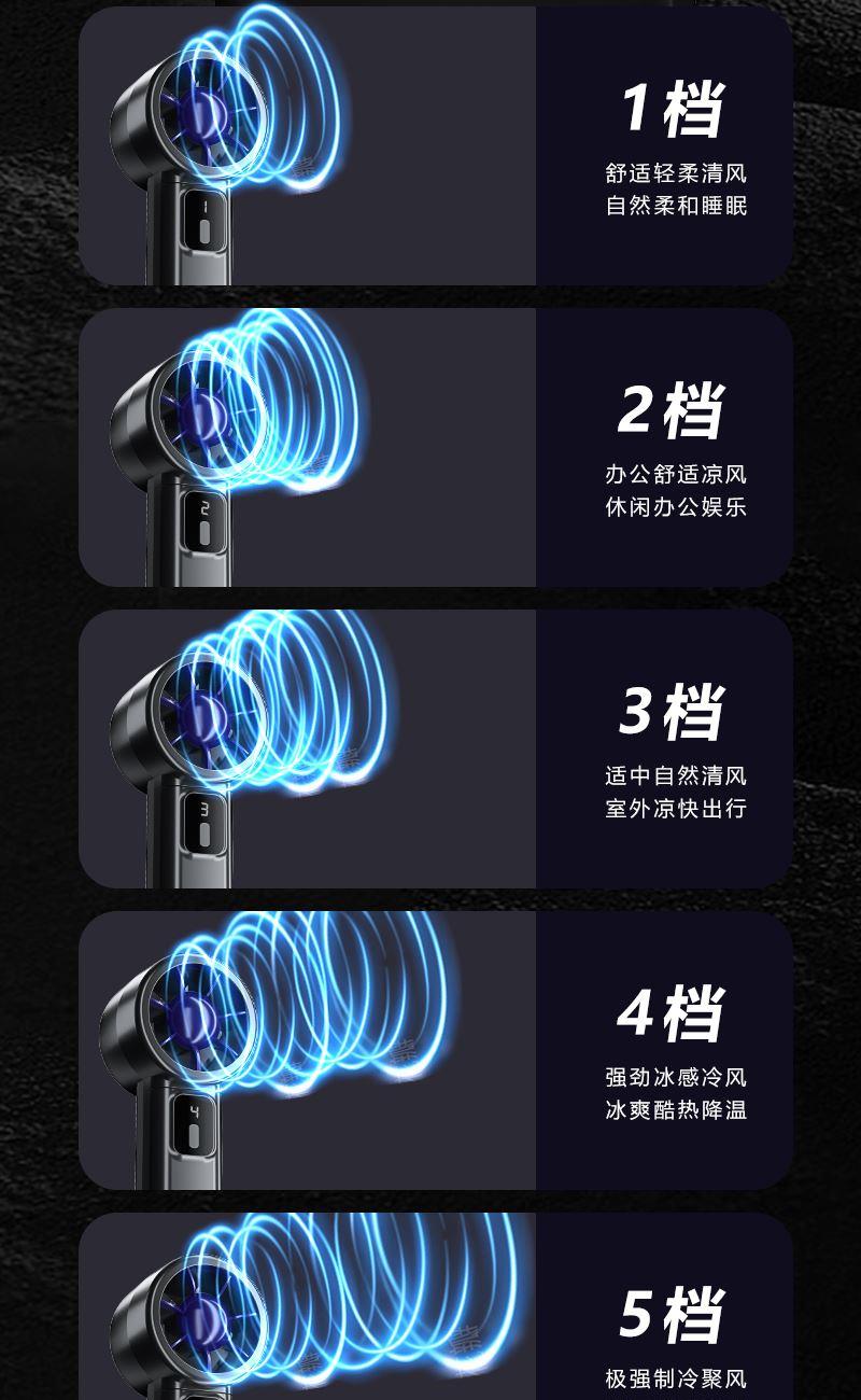 手持桌面户外小风扇 颜色:白色 黑色 材质:ABS 尺寸:185*91*30mm 容量:1200mAh 包装:彩盒包装 【推荐理由】: 精致小巧,方便携带 三档风速可调 桌面/手持/户外多种使用方法 大容量电池1200毫安