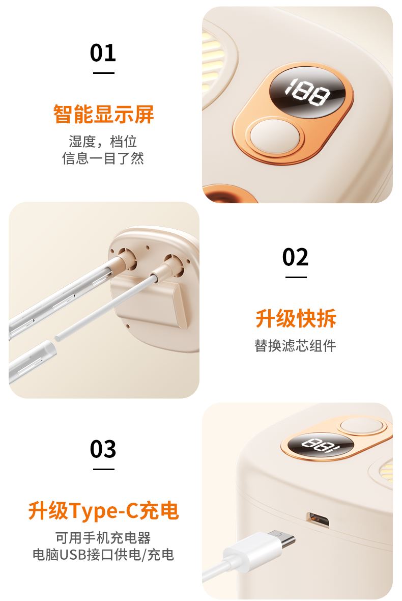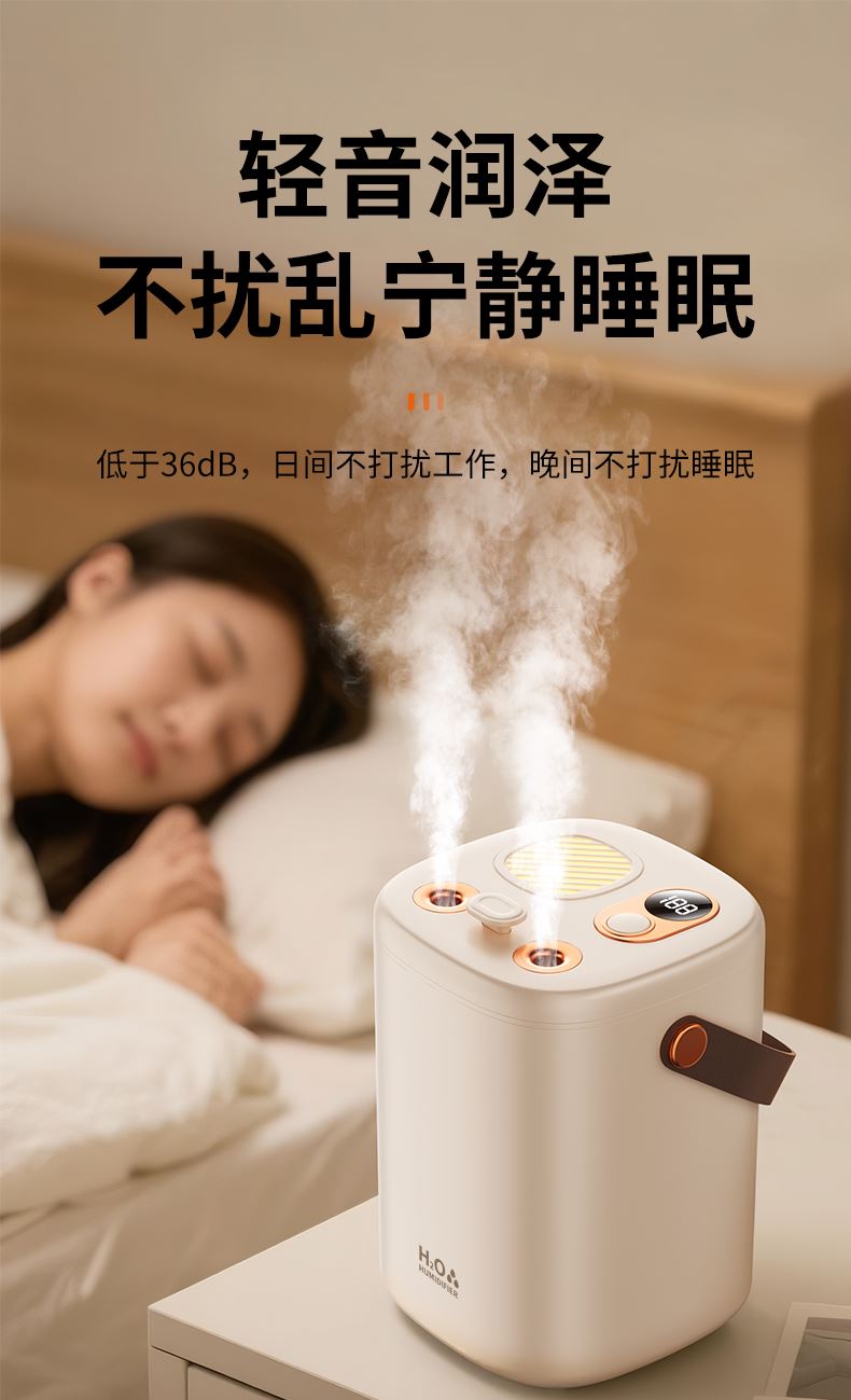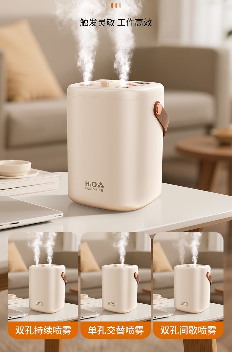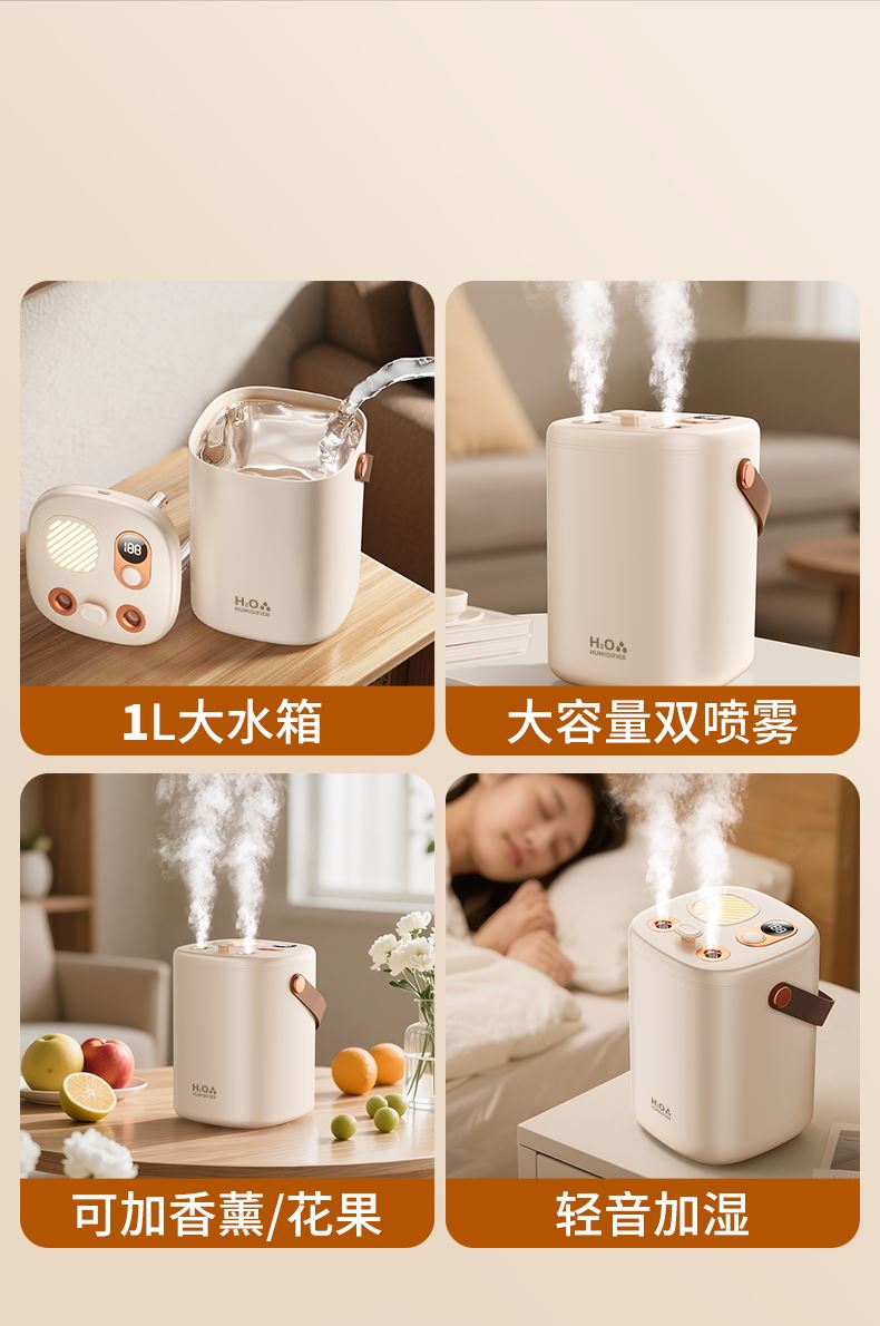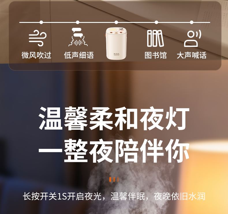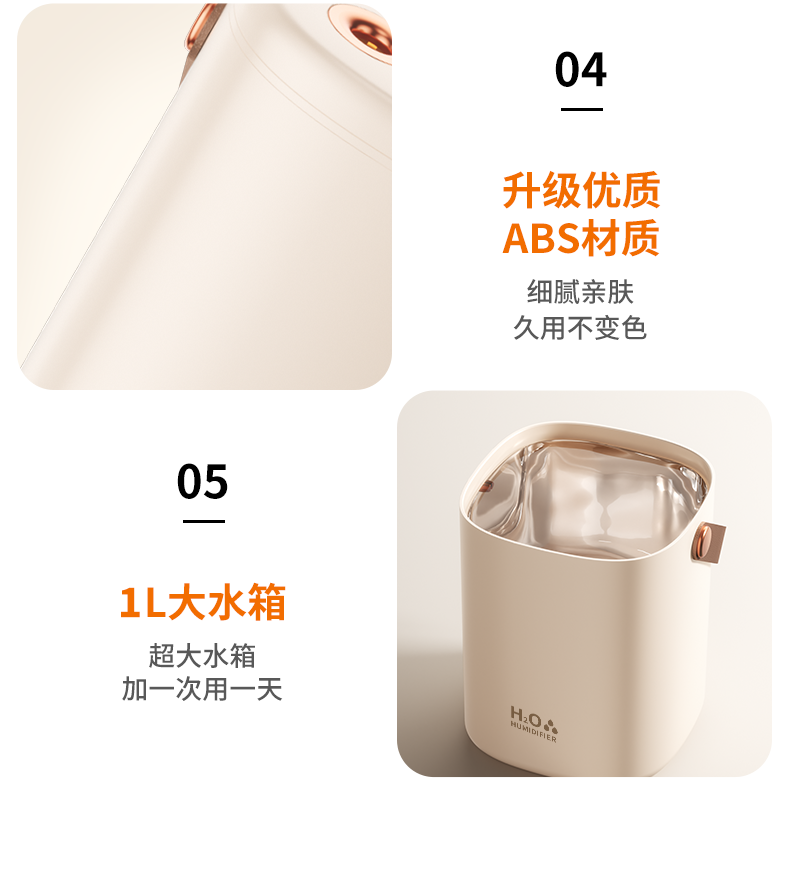 电池容量:1800毫安 颜 色: 米黄色 材 质:ABS+电子原件 水箱容量:1L 产品尺寸:118x110x178mn 滋润补水细雾双喷,节纳米级喷雾20小时长效喷雾,静音低至36DB,1L容量,自带1800mAh电池无需插电,氛围小夜灯智能LED数显,三档智能调,喷雾:3档,灯光:3档