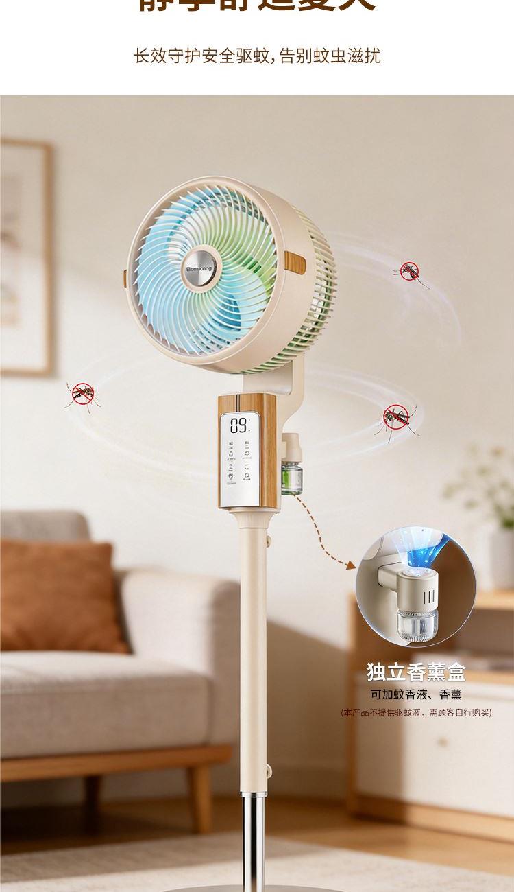 氛围彩灯+香薰驱蚊双效扇叶流转多彩柔光,氛围感满满;内置香薰+预留驱蚊盒,清新又防蚊