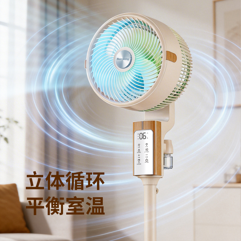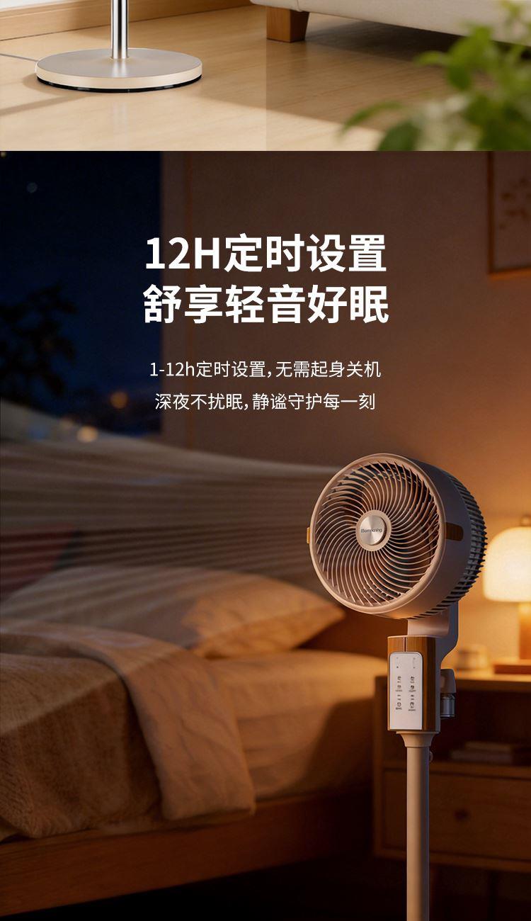 7m/s远距离劲风输送 超大倾角螺旋三叶设计,送风强劲更远,全屋快速降温