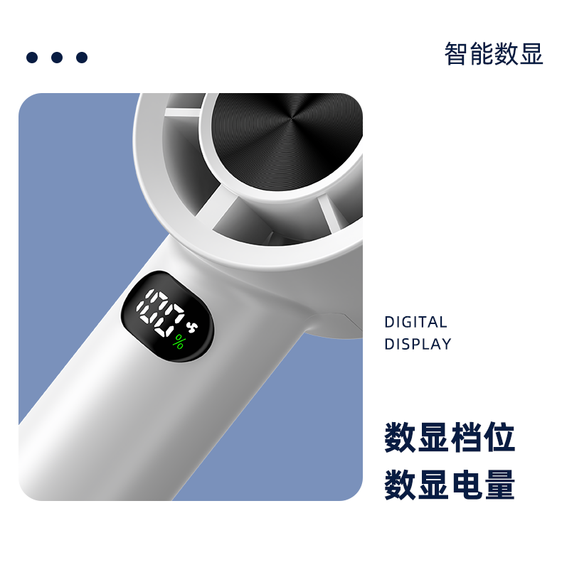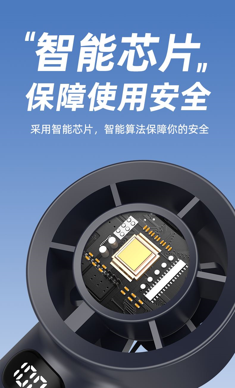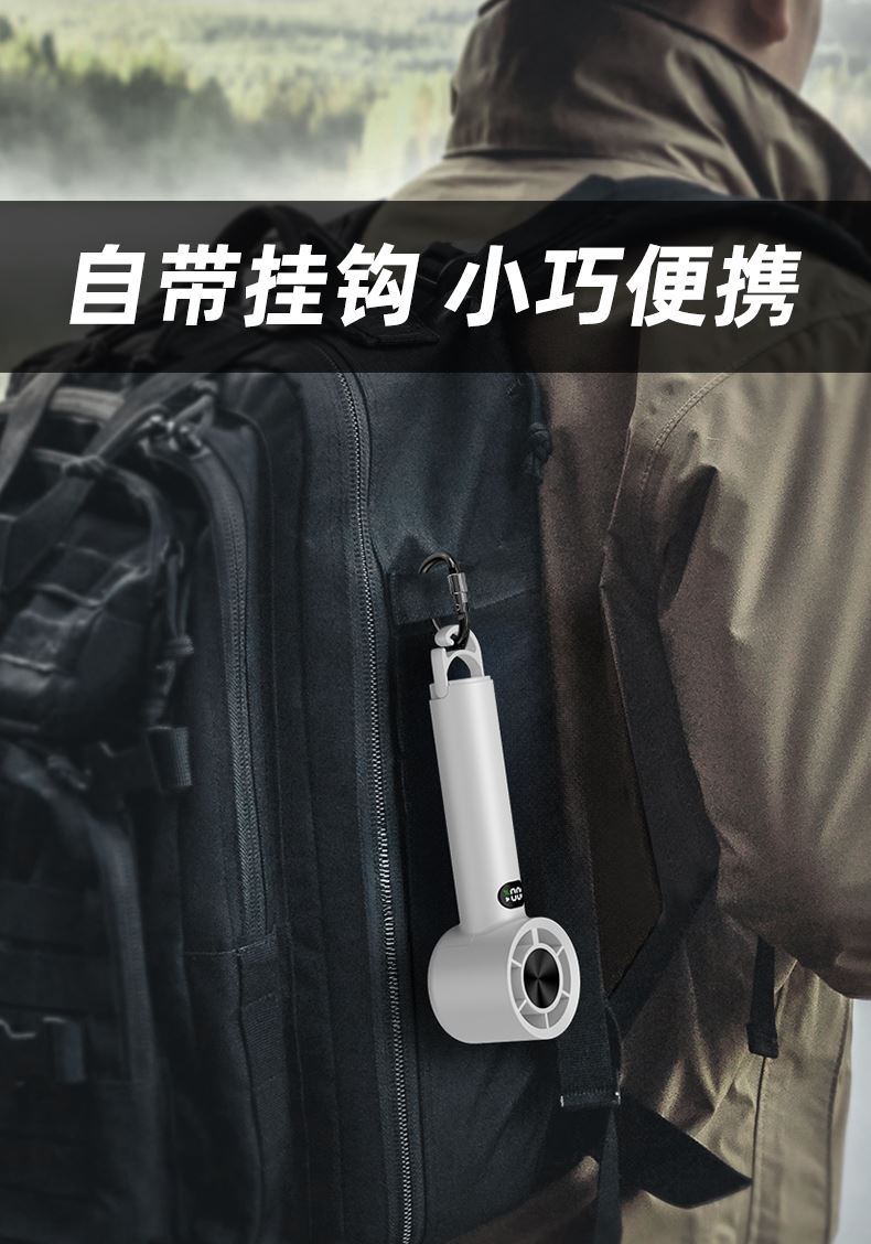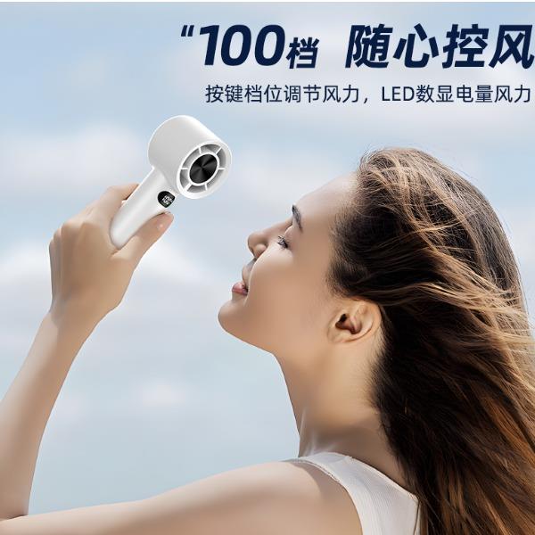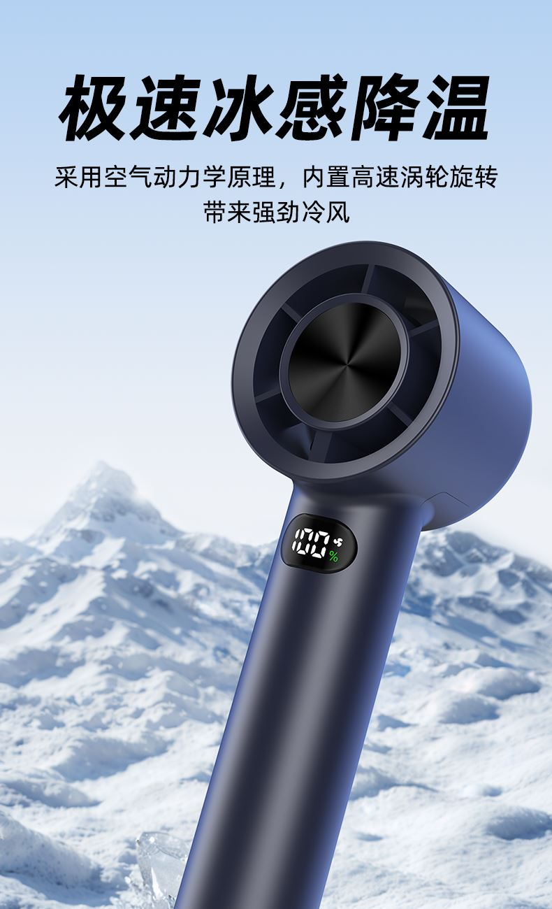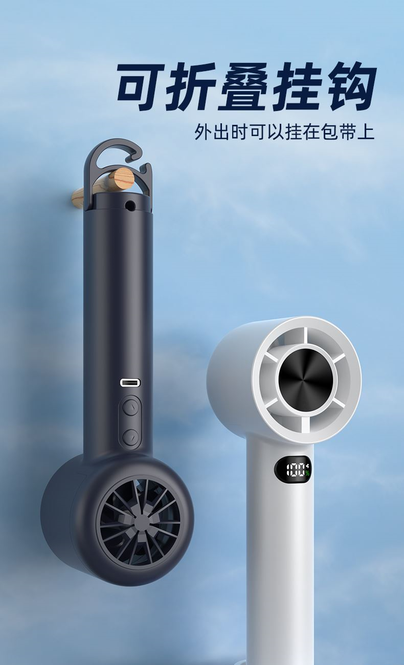 型号:HL09 电池容量:1200mAh 输入:5V-1A 使用时间:约1-5h 档位:100档无极调节 材质:ABS/PP/电子元器件 产品尺寸:55*51*190mm 产品重量:约133g 产品颜色:白色、蓝色,黑色,绿色,粉色 产品包装尺寸:57*53*170mm(彩盒) 产品卖点:100档风力随心调节,无刷电机大风力,智能数显,超长续航多场景使用,自带挂钩可户外可桌面。
