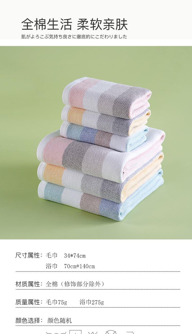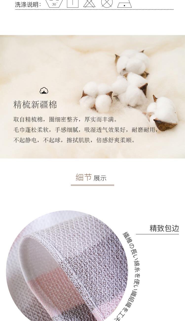 产品型号:云朵生活-2 规格:毛巾34*74cm*2 克重:毛巾75g 材质:纯棉 颜色:随机 组装形式:2毛巾 纯棉材质,蓬松柔软手感细腻,吸水透气效果好,不起静电不起球,能够快速吸收肌肤表面多余水分,让肌肤享受纯棉天然柔软度,拒绝滑腻倍感舒适。