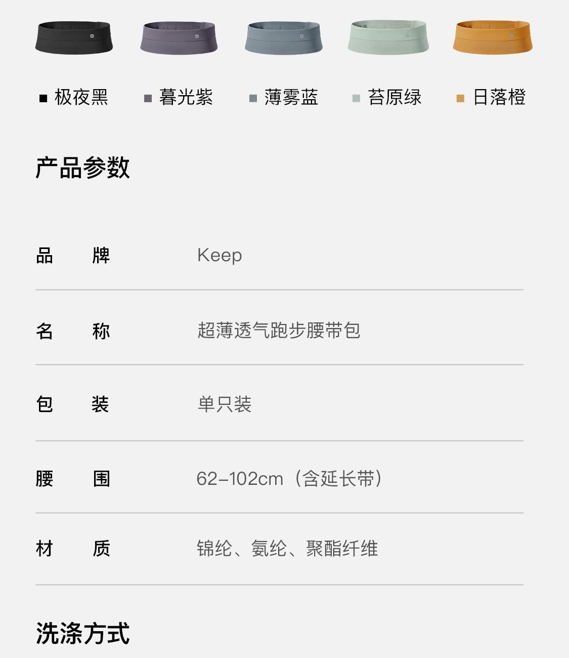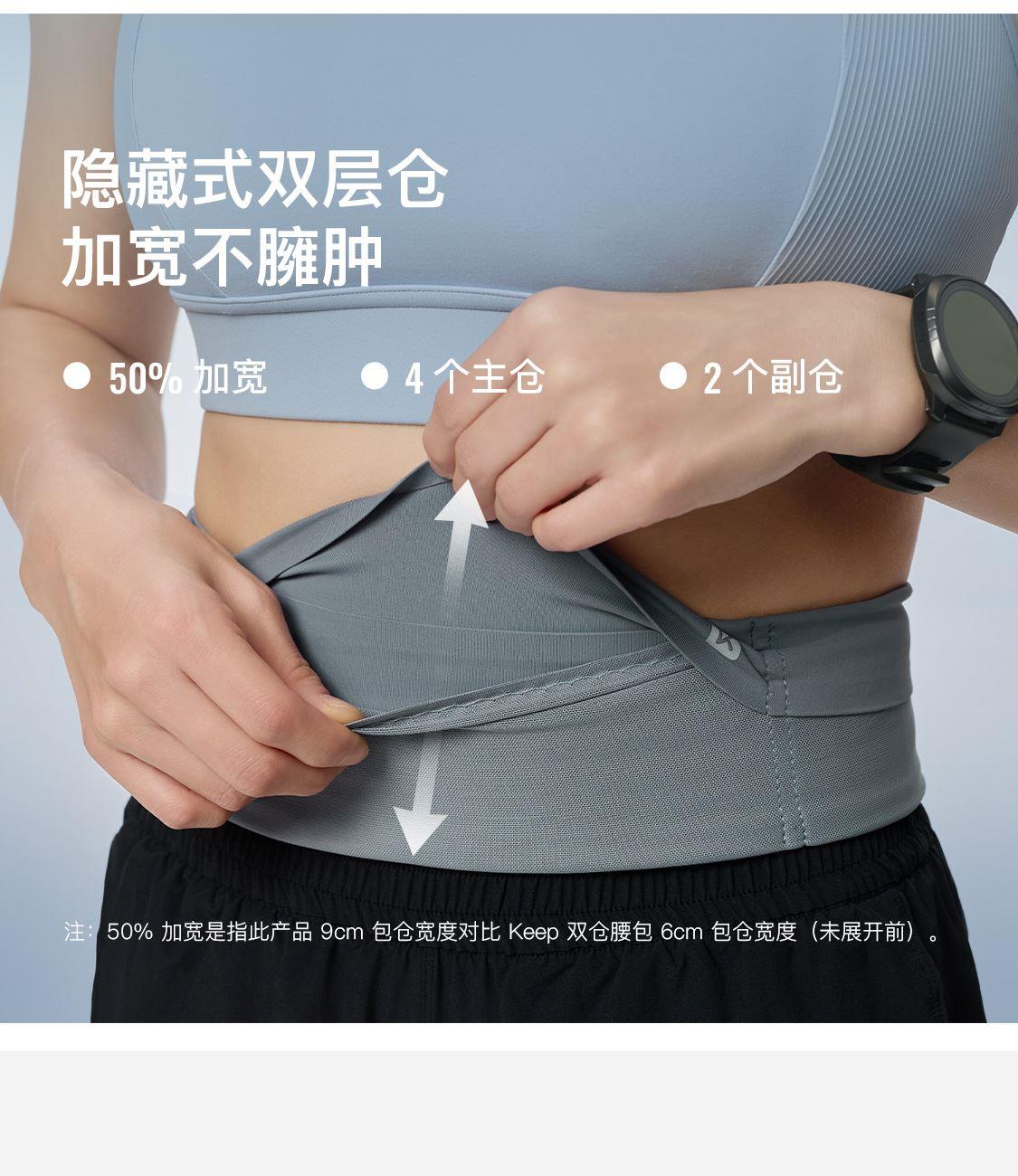 尺寸:62-102cm(配腰围延长带) 材质:锦纶、氨纶、聚酯纤维 4个主仓,2个副仓,无拉链设计,取放更方便;可放下6部iphone,约560个风洞,久跑不闷;3A级kang菌材质,无甲醛无异味; 轻至84g(鸭蛋重量)