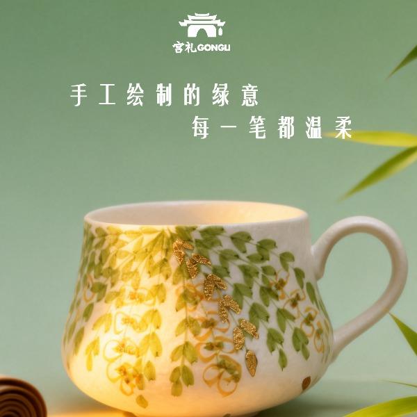 尺寸:长度11.5cm宽度8.8cm高度8cm口径8.8cm,杯垫:直径10cm 包装盒尺寸:13*13*13.5cm 容量:135ml 工艺:釉下彩 材质:高岭土 杯垫材质:皮革