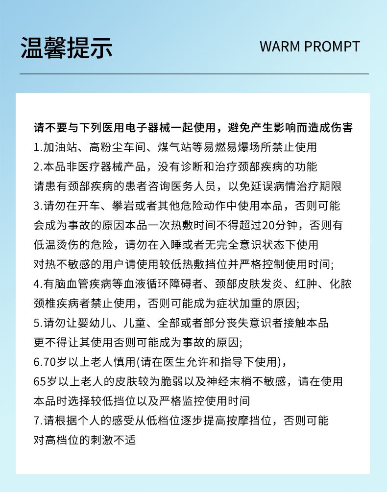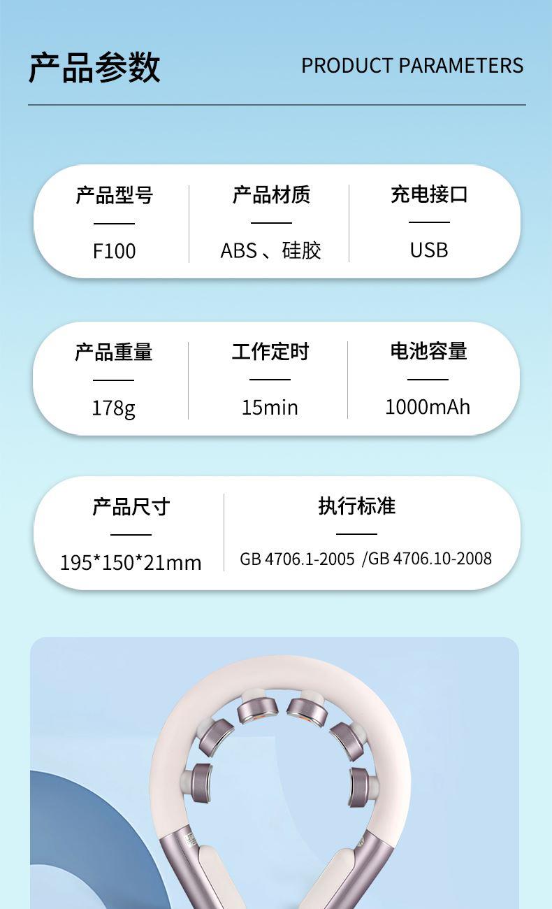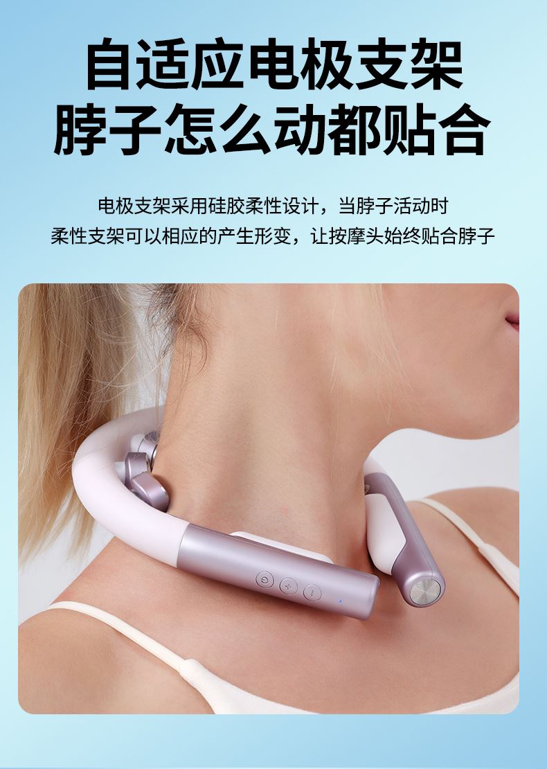 食品级软硅胶亲肤材质:按摩头与接触面均采用软硅胶材质,触感细腻亲肤,敏感肌使用无刺激,长期佩戴不闷汗、不压痕,贴合颈部时如同人手轻抚,舒适度远超普通塑料材质按摩仪