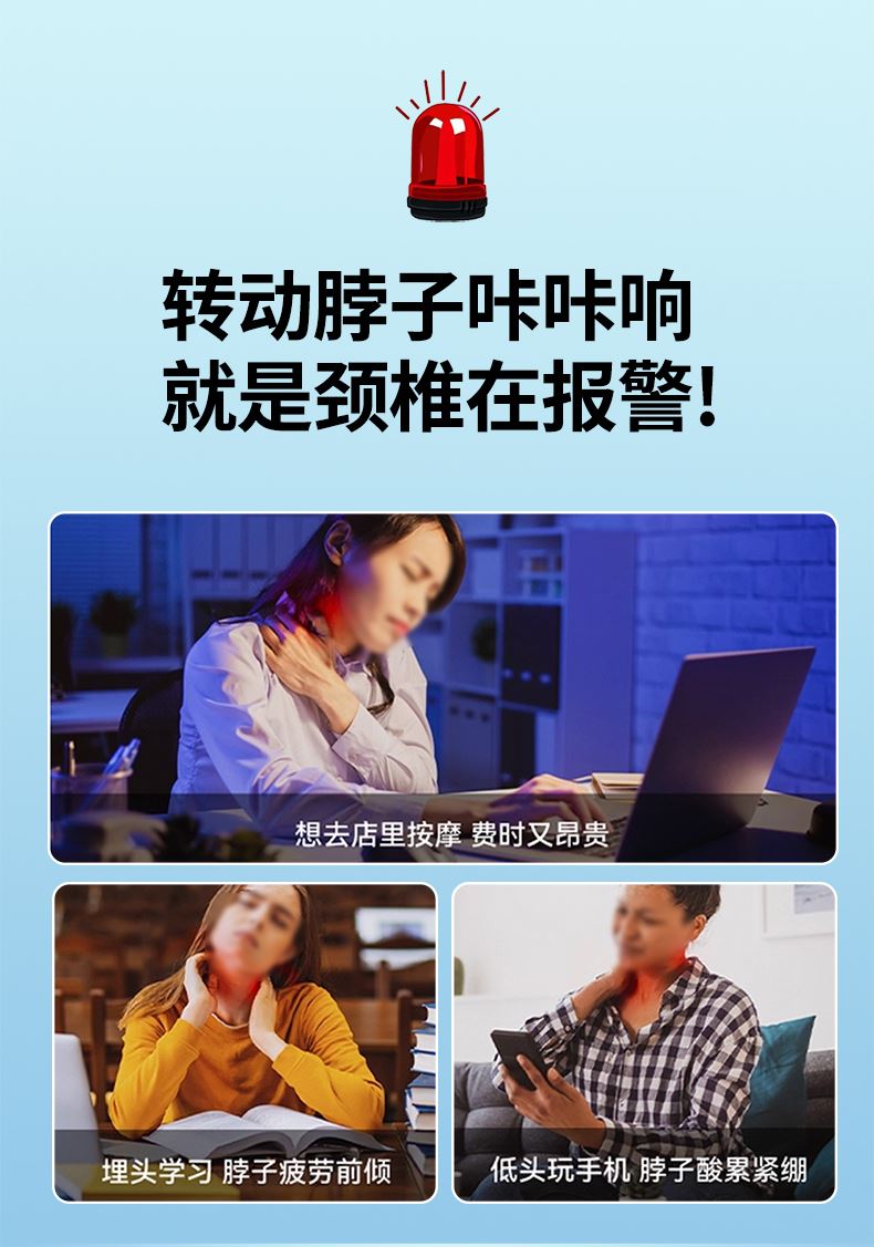 多技术融合仿真人手体验:整合热敷、脉冲、震动三大核心技术,搭配智能芯片模拟专业按摩师手法,从浅层放松到深层舒缓,每一下按摩都到位,足不出户就能享受线下理疗店级别的颈椎护理