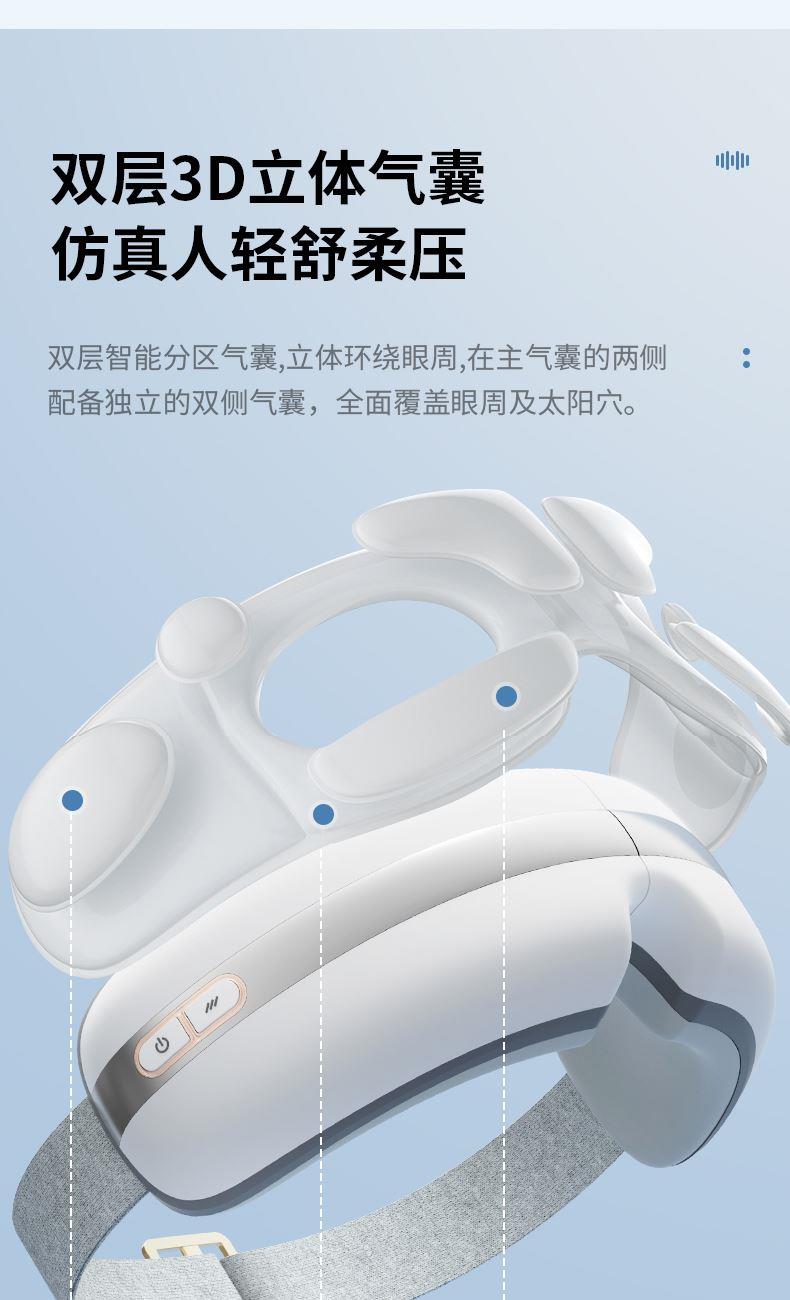 普通护眼仪按摩总漏过太阳穴?这款的双层智能分区气囊太懂眼周需求!主气囊按压眼周穴位,缓解眼球酸胀;两侧独立气囊专门照顾太阳穴,按压力度刚好,像专业按摩师的手一样,从眼周到太阳穴全面包裹,不管是用眼过度的酸胀,还是熬夜后的紧绷,都能被温柔揉开,按完整个眼周都放松了。
