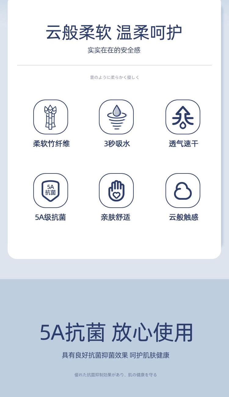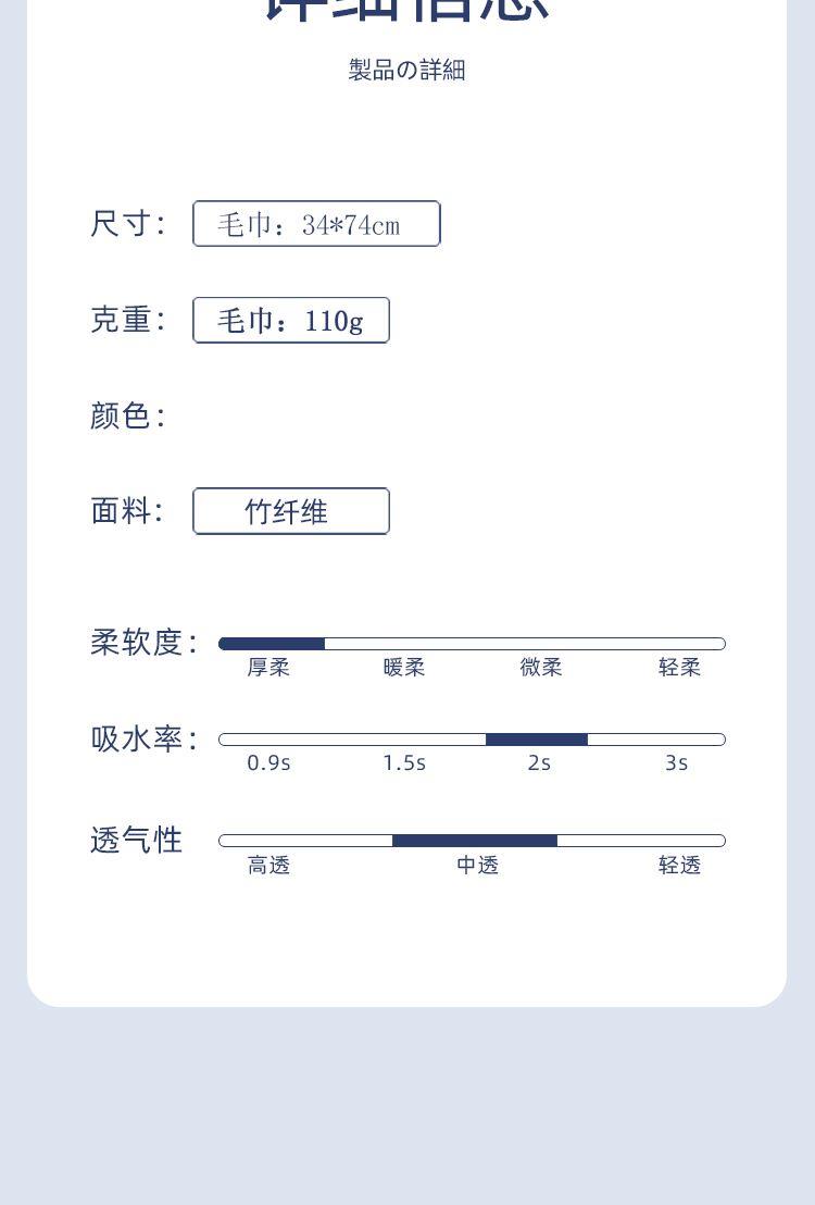 产品型号:竹雾-5 规格:毛巾34*74cm*2 克重:毛巾110g 材质:竹纤维(基部除外) 颜色:随机 包装盒尺寸:21*29.5*7.1cm 组装形式:2毛巾 杜绝一切有害添加, 天然竹纤维 耐摩擦,环保印染不掉色, 柔软亲肤,至臻使用体感。