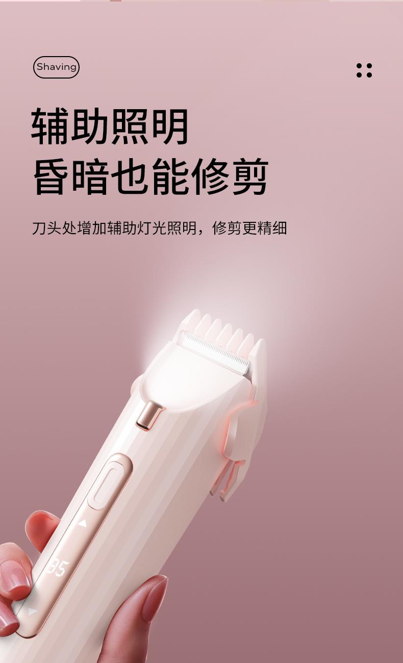 防刮刀网设计,进一步守护肌肤安全,避免误刮受伤;自带辅助照明功能,昏暗环境下也能清晰看清修剪部位,杜绝漏剪、误剪,修剪更细致。