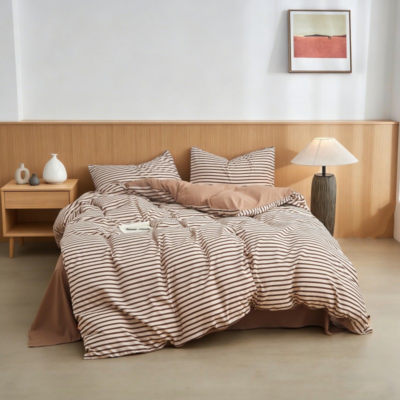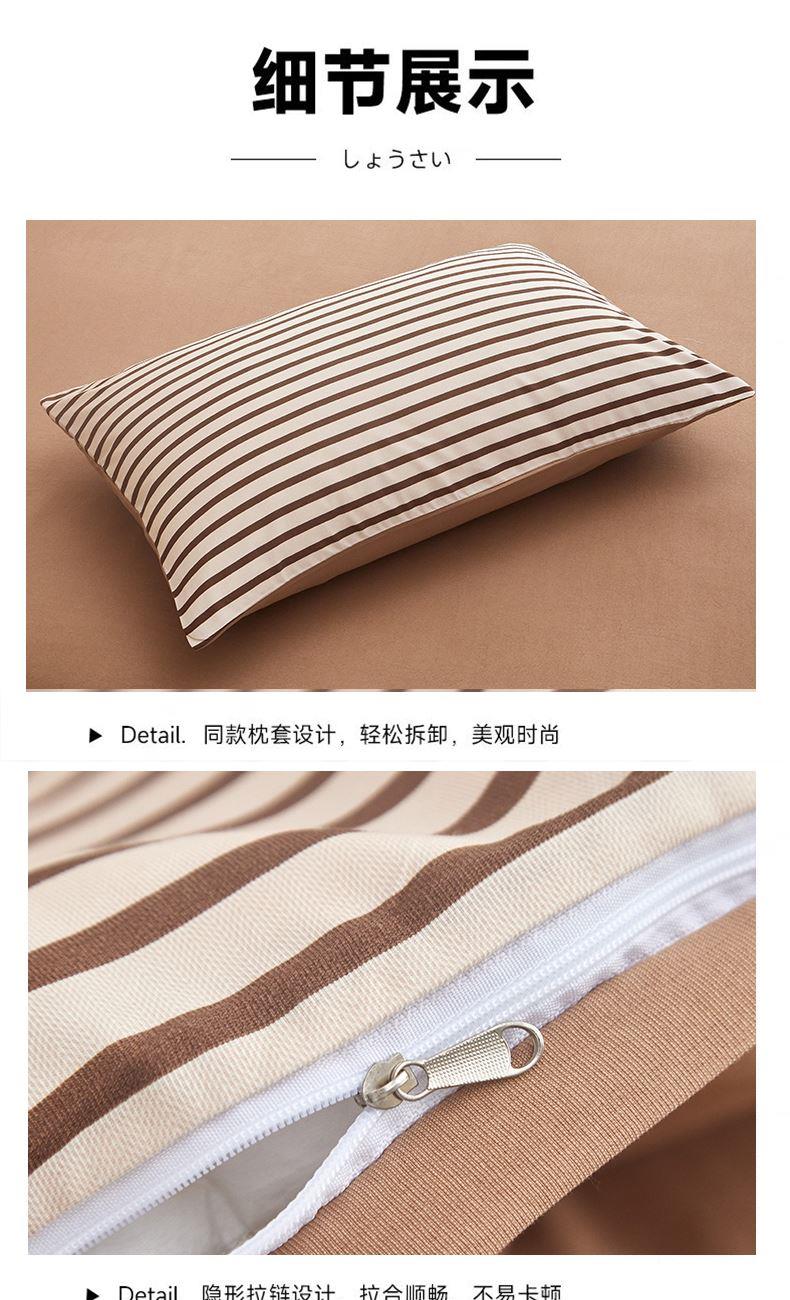 被套:200*230cm 床单:230*245cm 枕套:48*74cm*2 面料:云柔棉 执行标准:GB/T22796-2021 安全类别:GB18401-2010 B类 1.选用优质亲肤云柔棉面料,全工艺活性印染结合水洗处。 2.花型设计了无印良品经典简约风,选择较为简约温馨的颜色,更加适合年轻一代居家使用; 3.绿色环保印染技术,严控PH值甲醛等,枕套采用口袋式设计,美观大方,让您时刻感受现代简约家居的睡眠新体验。