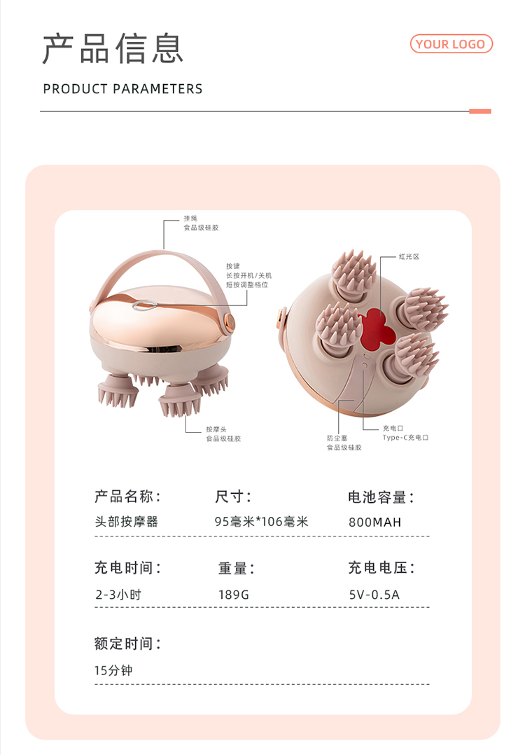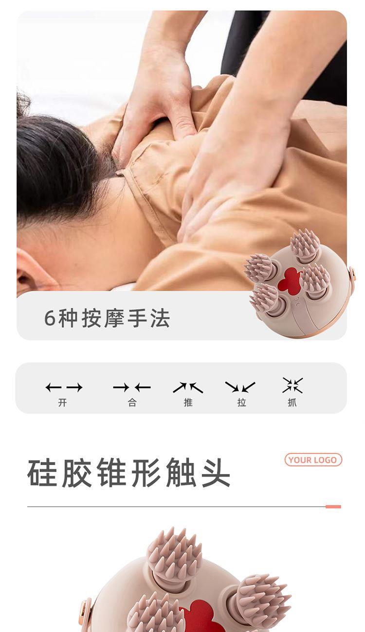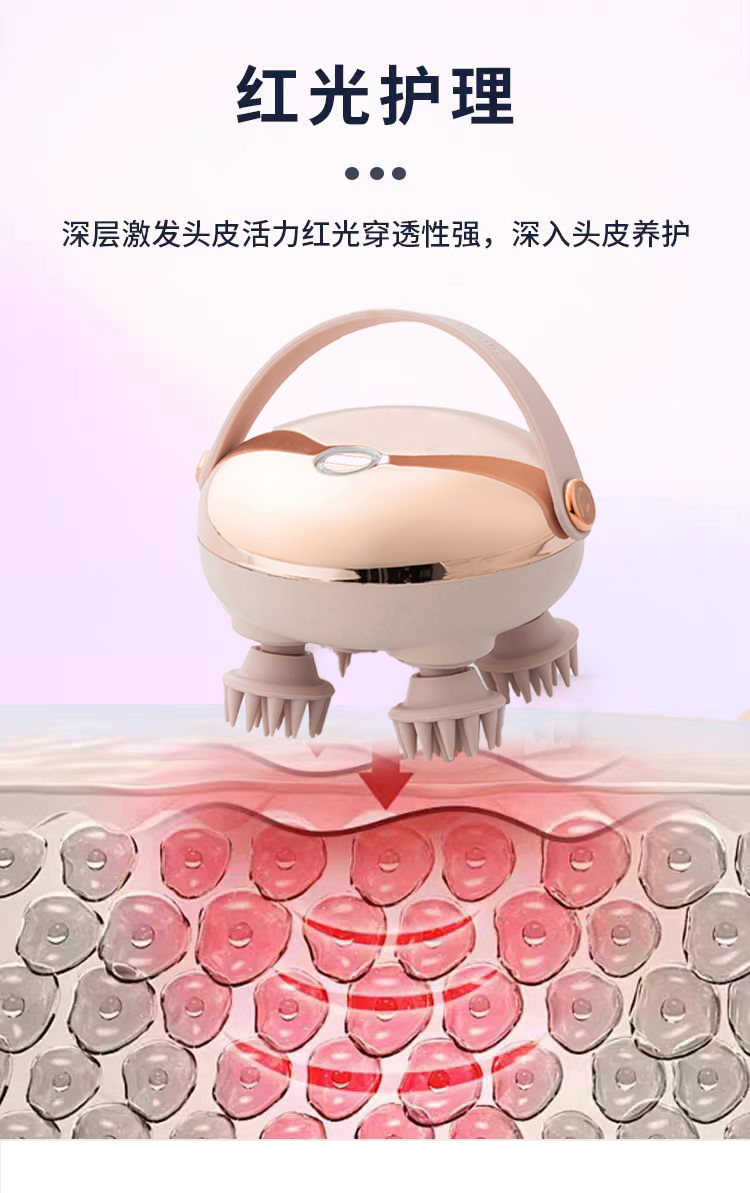 多效理疗 + 舒适体验:红光理疗搭配柔软硅胶触头,按摩时舒爽头皮,用完元气满满;支持开合、推拉、抓等 6 种按摩手法,模拟真人手感,放松更到位。