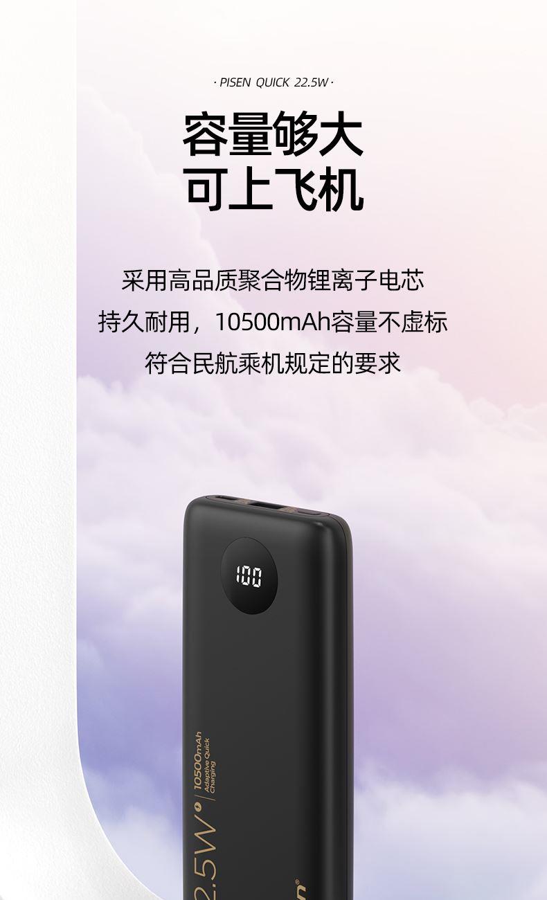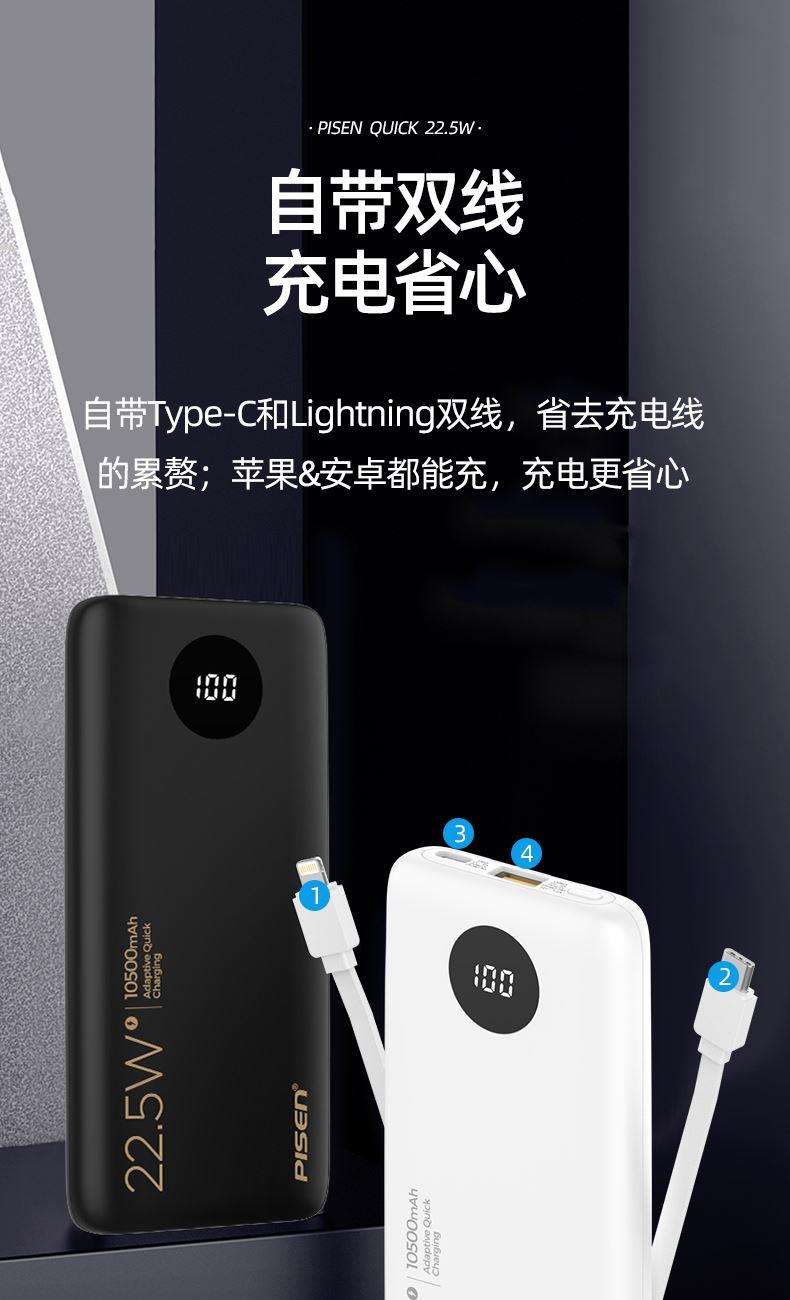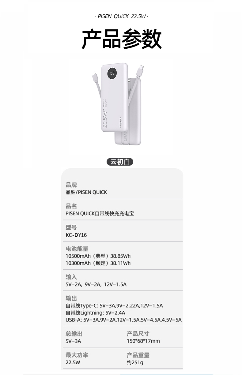 品胜自带线22.5W快充充电宝10500毫安KC-DY16