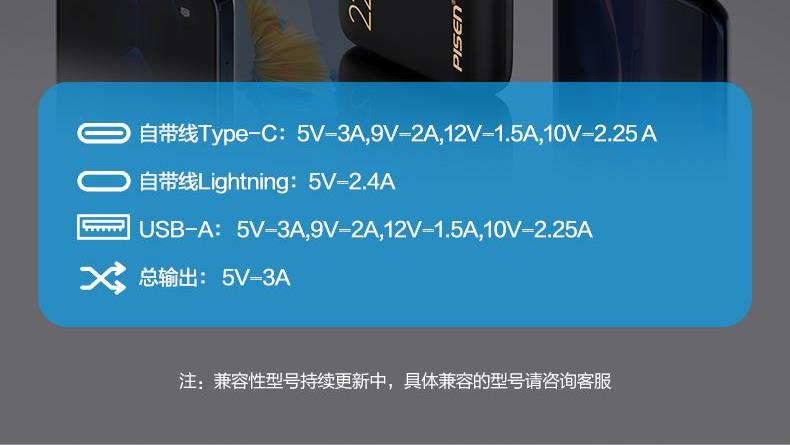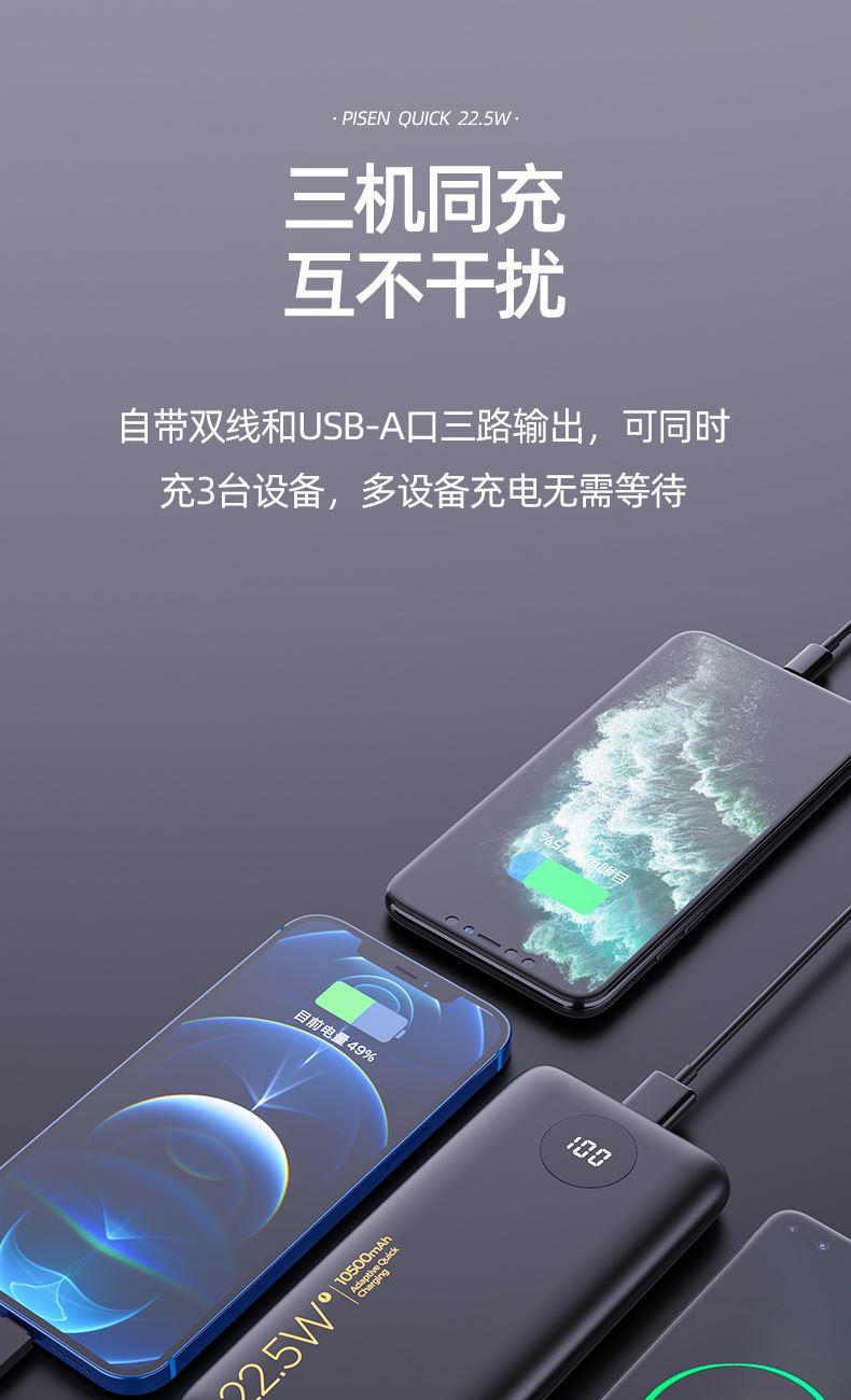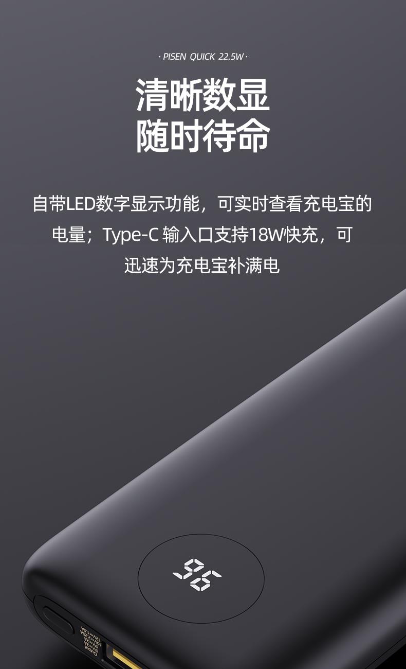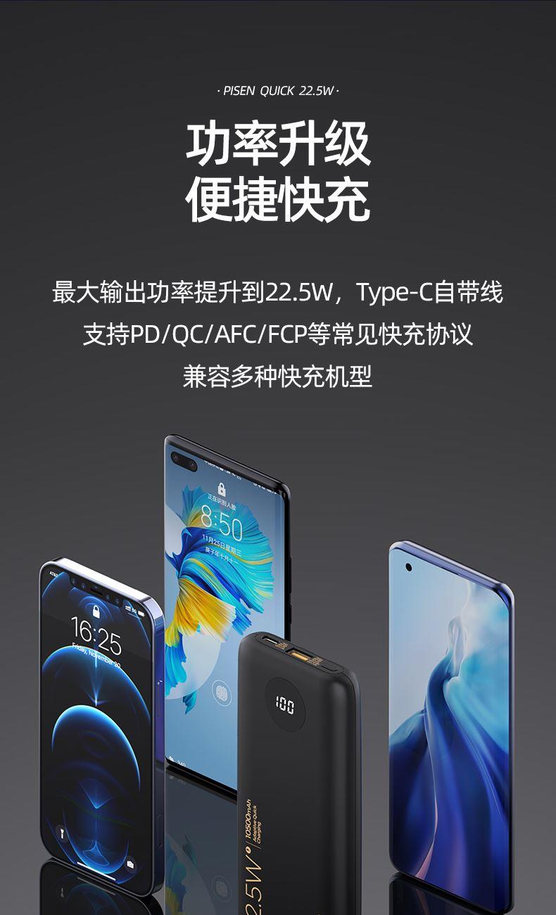 品胜自带线22.5W快充充电宝10500毫安KC-DY16