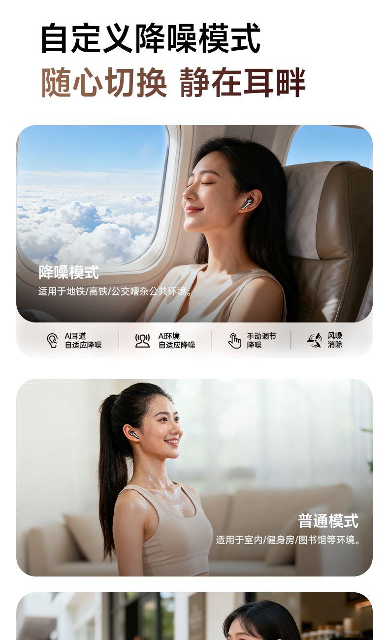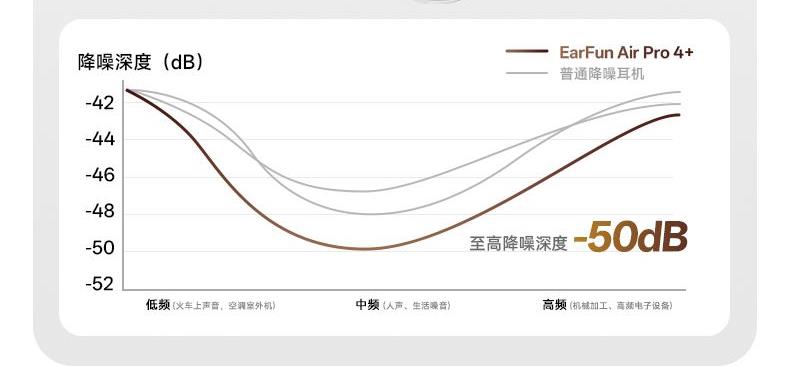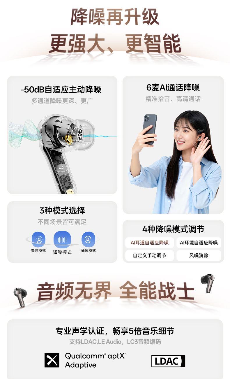 ● Hybrid Adaptive自适应混合降噪深度高达50dB
