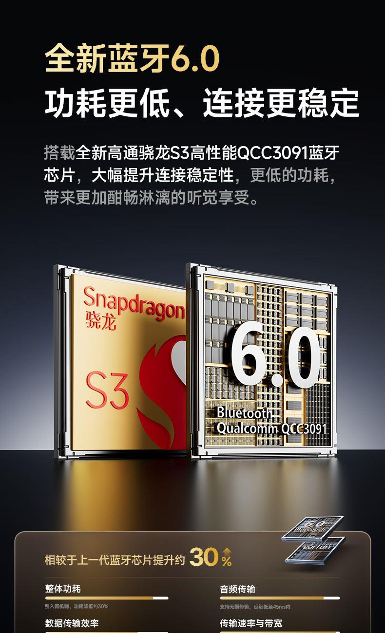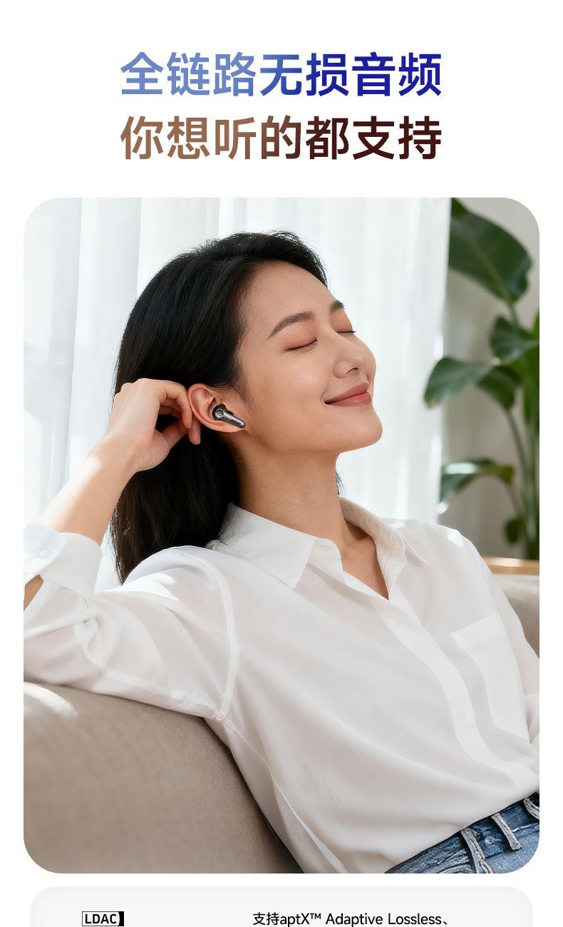 ● 高通QCC3091 SoC旗舰芯片,支持aptX Lossless解码,提供CD级音质